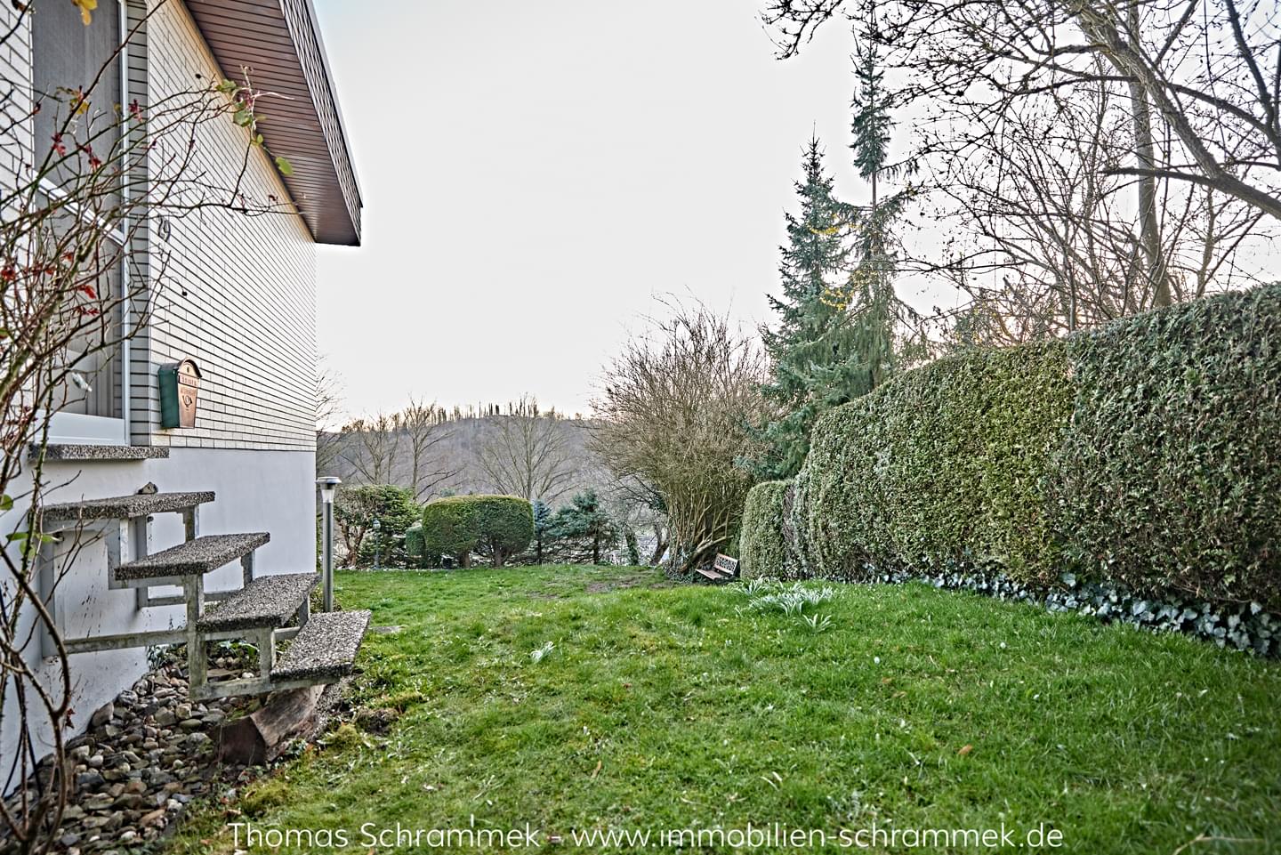 - Terrasse und Garten: Vom großzügigen Balkon aus führt eine Treppe, im Design des Balkongeländers, hinunter in das Garten- bzw. Untergeschoss. Dort erwartet Sie eine teilüberdachte Terrasse mit einem Außenkamin, die fließend in den Garten übergeht. Der Garten ist nahezu uneinsehbar und bietet durch seine Größe und Gestaltung vielfältige Nutzungsmöglichkeiten. Ob zum Entspannen, für unbeschwerte Stunden mit Kindern oder als kreatives Refugium für Gartenliebhaber – hier erwartet Sie ein Ort der Ruhe, der Ihnen maximale Privatsphäre und einen naturnahen Rückzugsraum bietet.