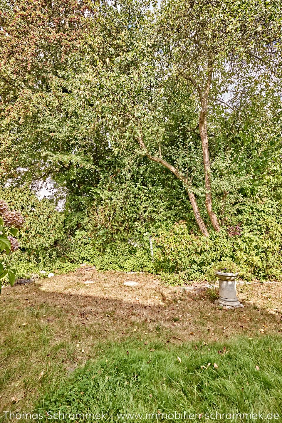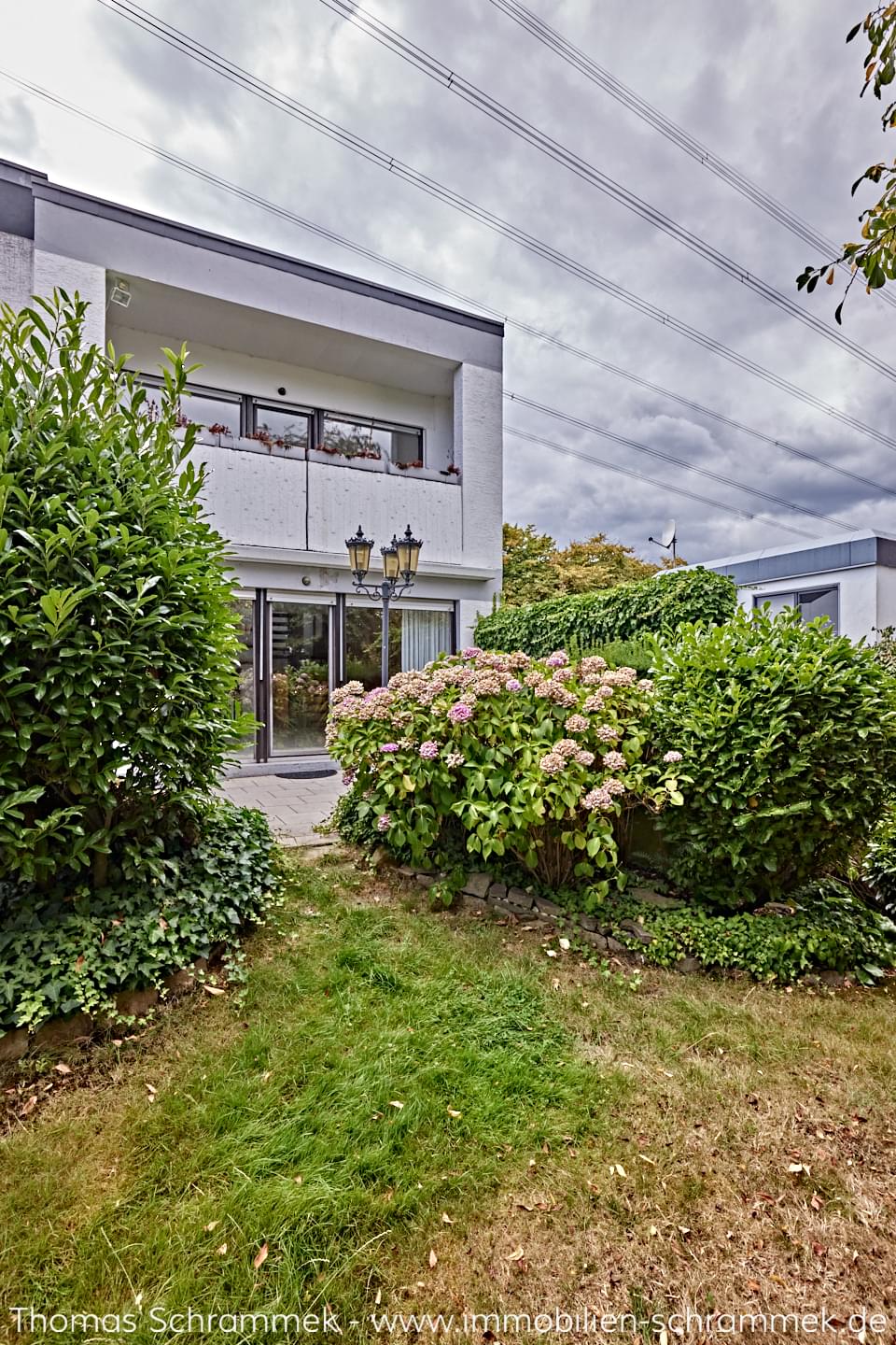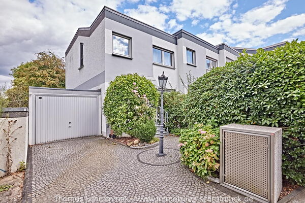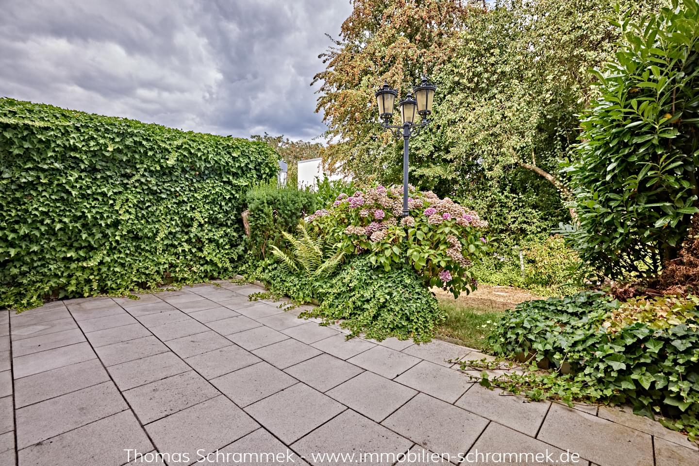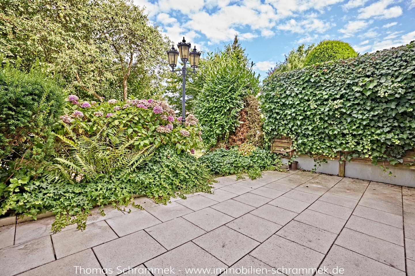 - Terrasse und Garten: Vom Wohnbereich aus betreten Sie die großzügige Terrasse, die mit ihrem Blick ins Grüne zum Entspannen einlädt. Für zusätzlichen Komfort sorgt die elektrische Markise, die sich über die gesamte Terrassenbreite erstreckt und angenehmen Schatten spendet. Der schöne Garten eröffnet zahlreiche Nutzungsmöglichkeiten – ob zum Spielen, Gärtnern oder Relaxen. Eine dichte Bepflanzung sorgt für Privatsphäre und unterstreicht den pflegeleichten Charakter des Außenbereichs.