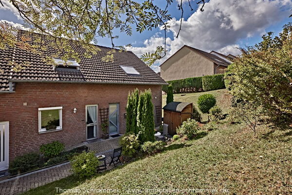 - Terrasse und Garten: Mit Blick ins Grüne lädt die Terrasse zu entspannten Momenten im Freien ein - ob der Kaffee am Morgen oder der ruhige Ausklang des Tages am Abend - hier lässt sich die Zeit im Garten in voller Ruhe genießen.
