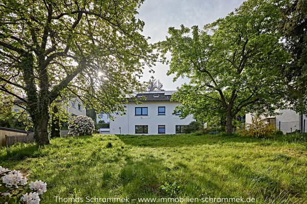 Der Außenbereich ist insgesamt aufgeteilt in einen großzügigen Vorgarten und den rückwärtig gelegenen Garten der Haupteinheit. Im Vorgarten könnte bei Bedarf der Einliegerwohnung ein kleines Gartenstück abgeteilt werden. Auch für die Errichtung weiterer Stellplätze würde sodann viel Platz übrig bleiben.