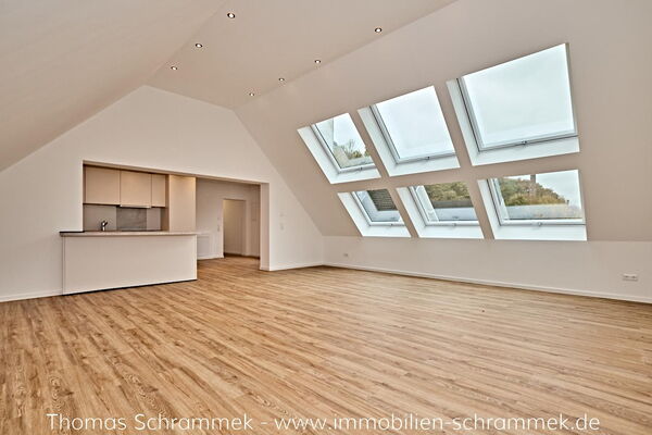 - Wohn-Ess-Kochbereich: Das Herzstück der Wohnung ist das lichtdurchflutete Wohn-Esszimmer mit offener Küche, das durch große Fenster eine beeindruckende Atmosphäre präsentiert. In Kürze wird hier zudem eine moderne, schicke Einbauküche installiert, die den Raum perfekt abrundet.