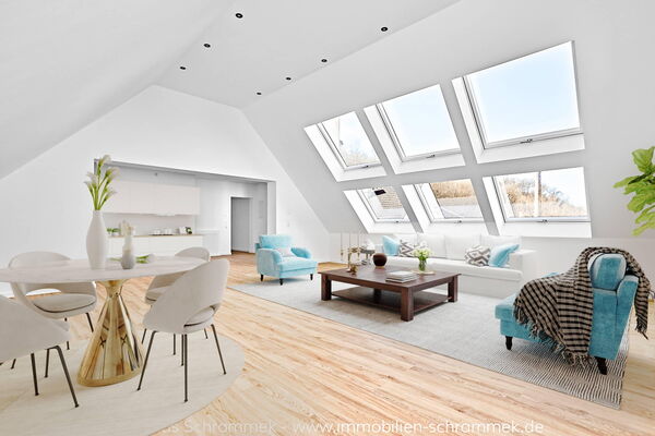 - Wohn-Ess-Kochbereich: Das Herzstück der Wohnung ist das lichtdurchflutete Wohn-Esszimmer mit offener Küche, das durch große Fenster beeindruckende Atmosphäre präsentiert.