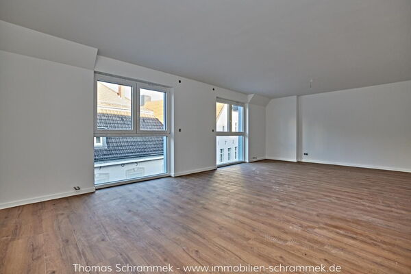 - Wohn-Esszimmer mit offener Küche: Der offene Wohn-Ess-Kochbereich ist das Herzstück der Wohnung. Dank großer Fensterfronten wird dieser großzügig geschnittene Raum vom Tageslicht durchflutet und gewährt einen tollen Ausblick über die Innenstadt.