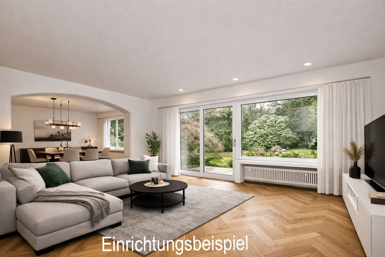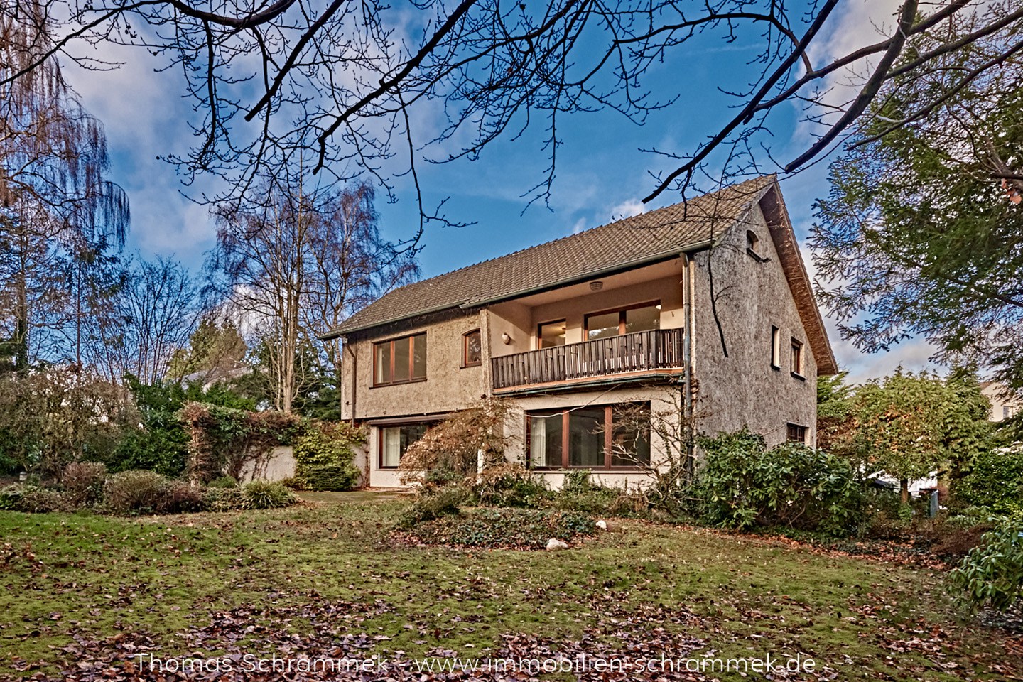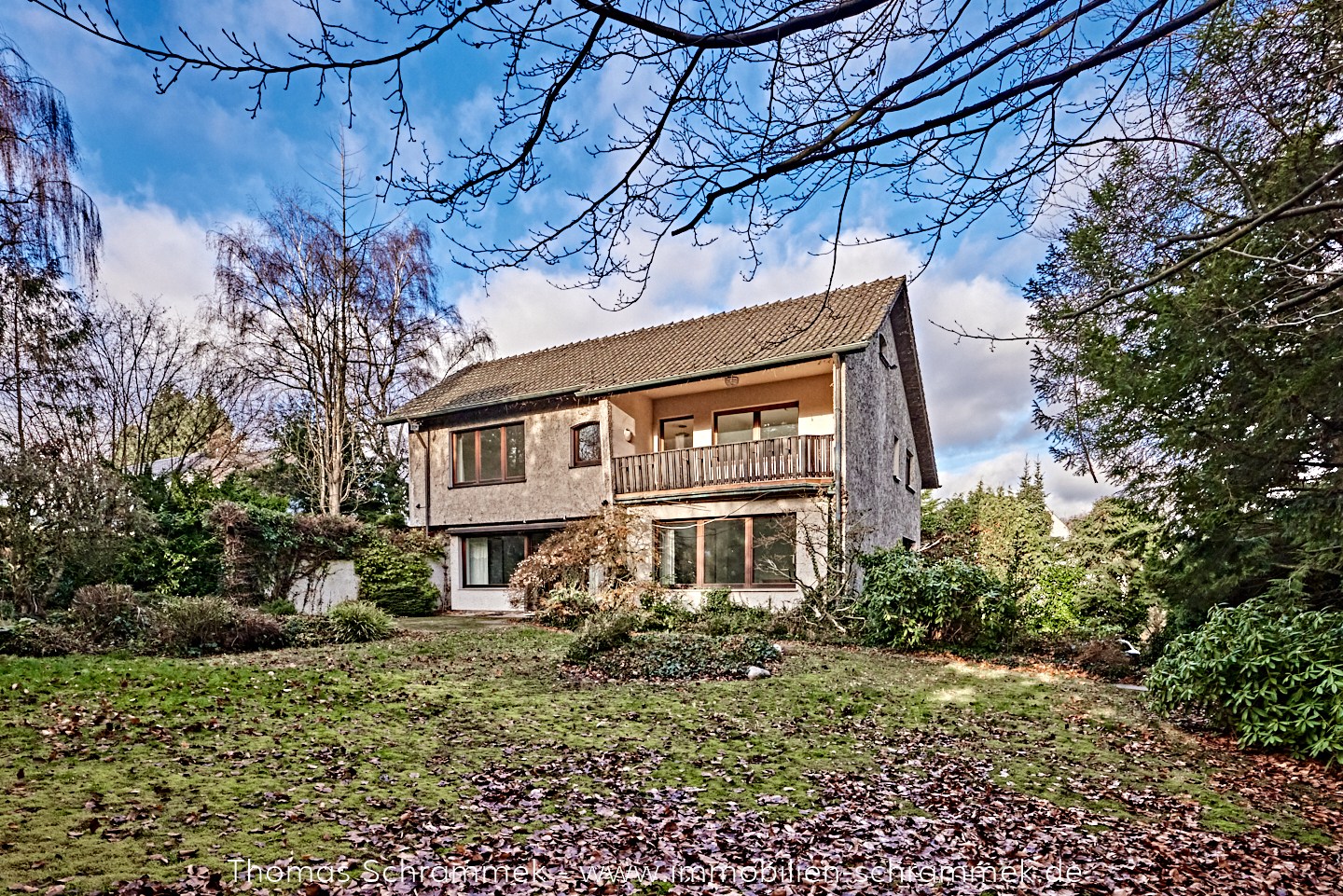 Dieses großzügige und freistehende Einfamilienhaus wurde 1958 auf einem parkähnlichen ca. 1.614 m² großen Kaufgrundstück erbaut. Idyllisch gelegen und angenehm abgeschirmt begeistert es Familien und Naturliebhaber, die ein außergewöhnliches Zuhause suchen.