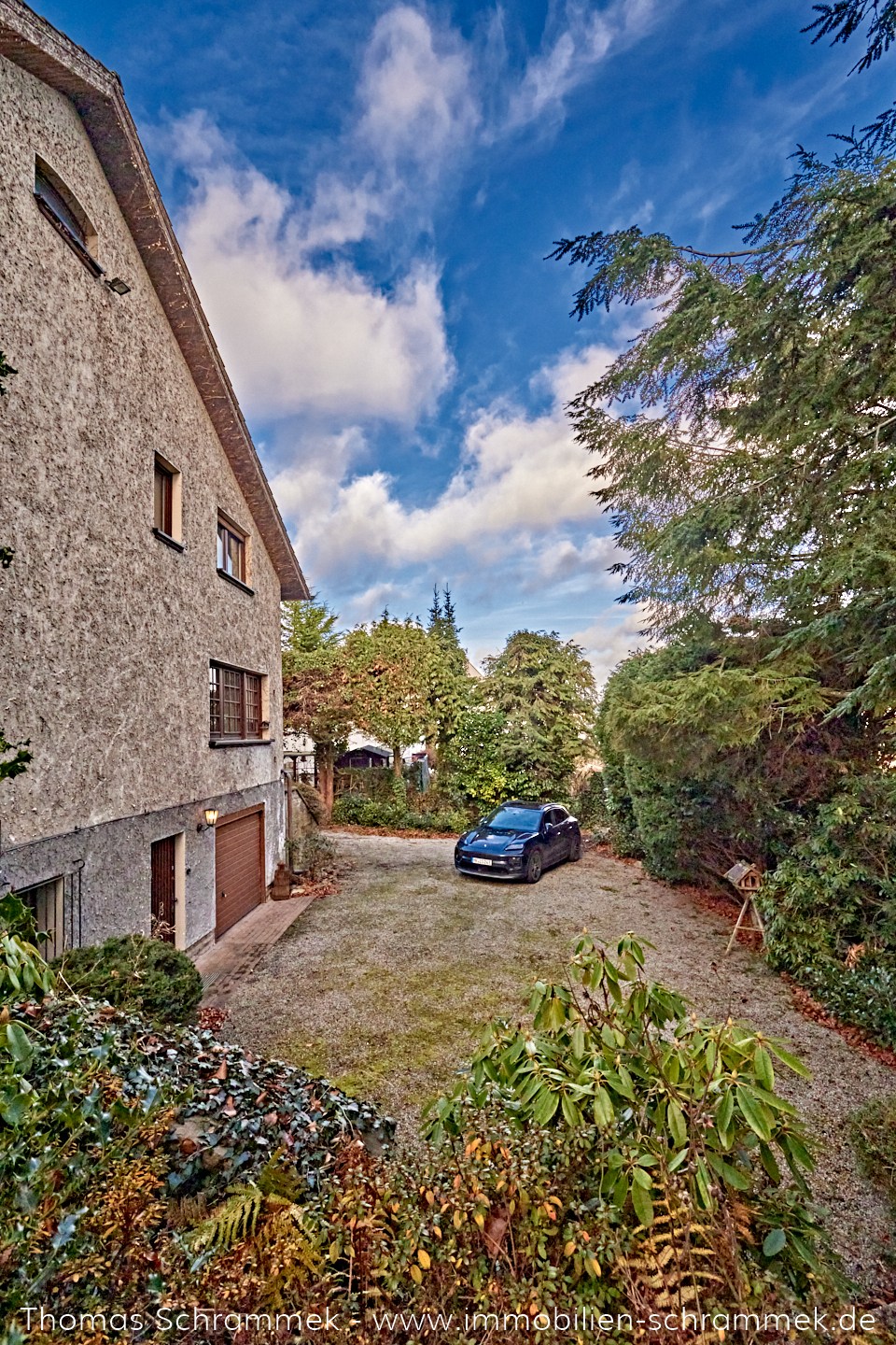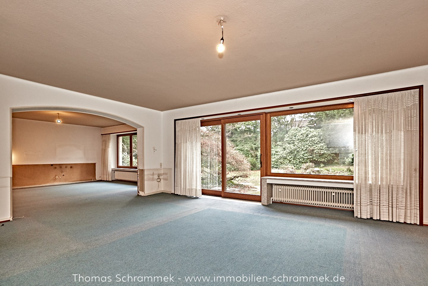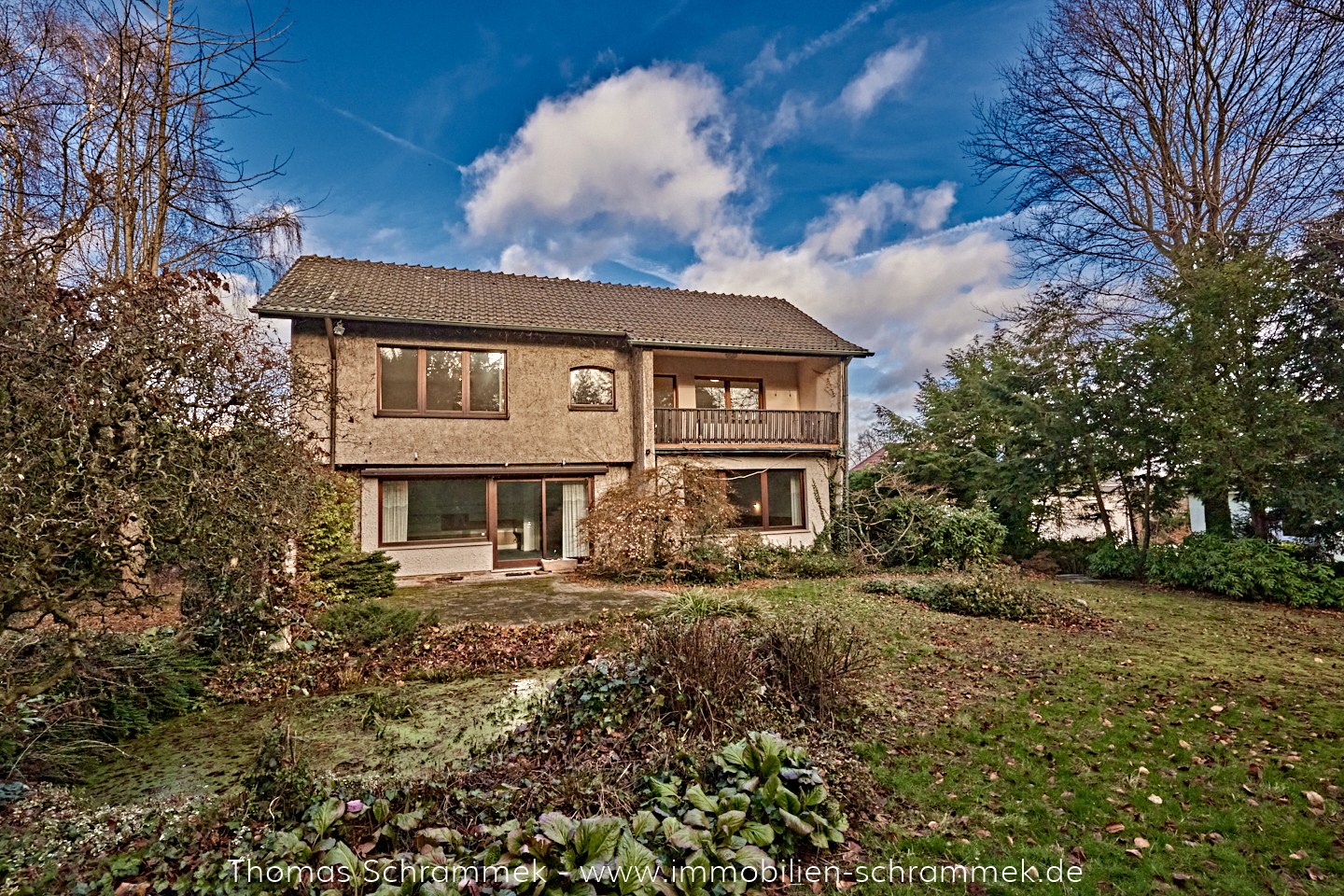 Dieses großzügige und freistehende Einfamilienhaus wurde 1958 auf einem parkähnlichen ca. 1.614 m² großen Kaufgrundstück erbaut. Idyllisch gelegen und angenehm abgeschirmt begeistert es Familien und Naturliebhaber, die ein außergewöhnliches Zuhause suchen.