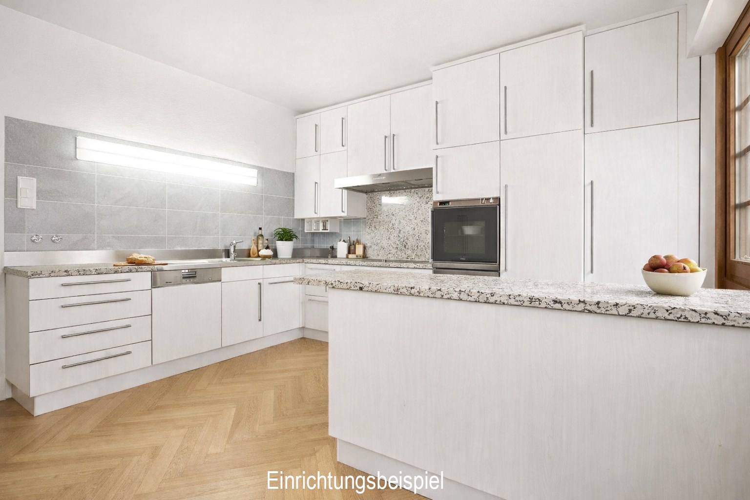 - Küche: Die gut geschnittene Küche überzeugt durch ihre durchdachte Aufteilung, zahlreiche Stauraummöglichkeiten und viel Arbeitsfläche. Für Kochbegeisterte oder ambitionierte Hobbyköche eröffnen sich hier ideale Voraussetzungen, um kulinarische Ideen umzusetzen und mit wenigen Handgriffen einen persönlichen Lieblingsort im Alltag zu schaffen.