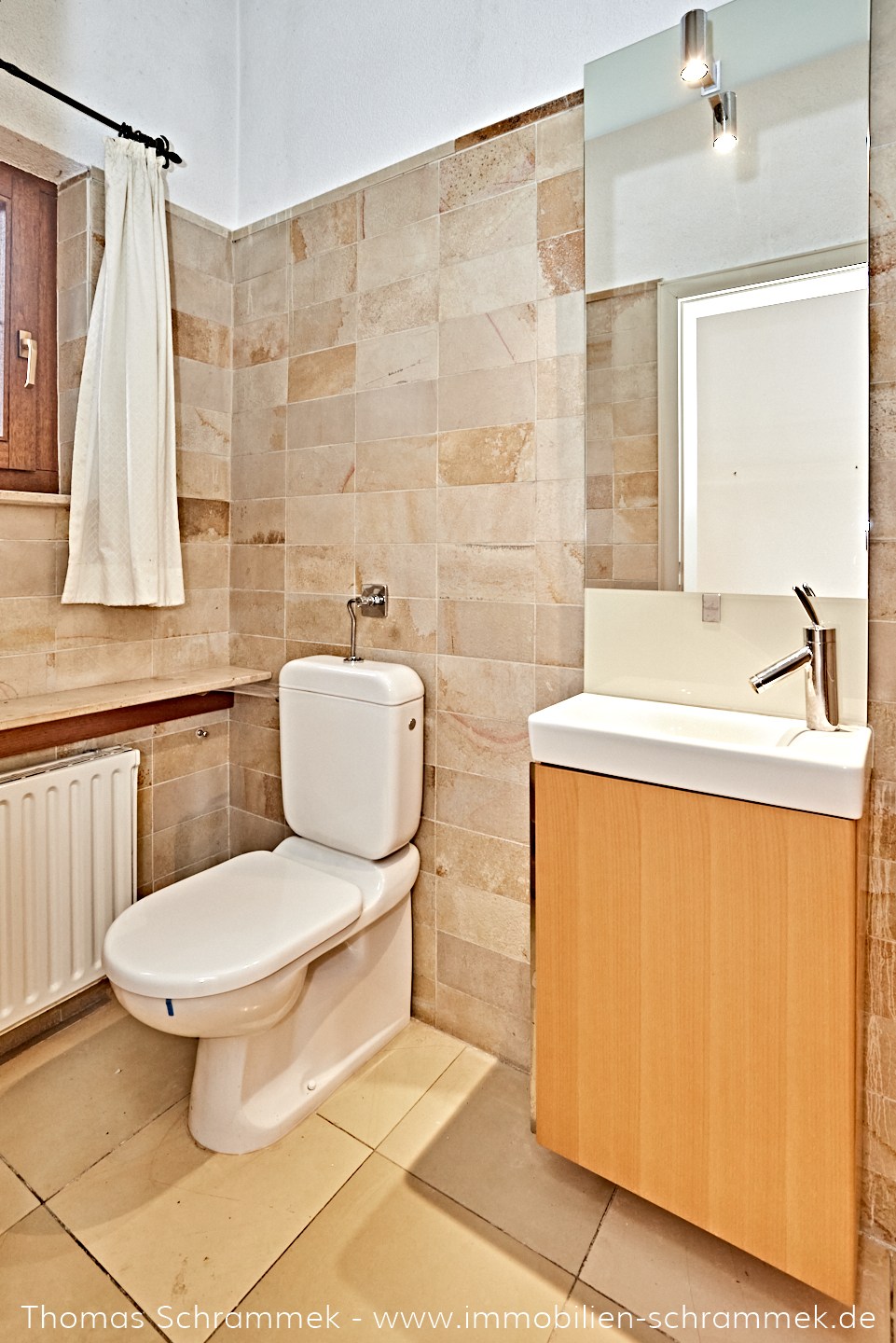 - Badezimmer: Das Tageslichtbad ist mit allen nötigen Sanitäreinrichtungen ausgestattet und bietet großzügige Platzverhältnisse. Durch eine geschickte Umgestaltung ließe sich hier eine moderne Wellnessoase schaffen, die den Alltag vergessen lässt.