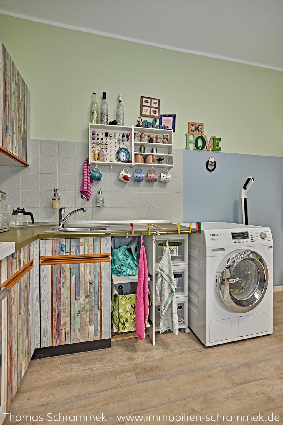 - Waschküche: Die Waschküche ist großzügig dimensioniert. Hier finden Waschmaschine, Trockner und ein Hauswirtschaftsbereich bequem Platz.