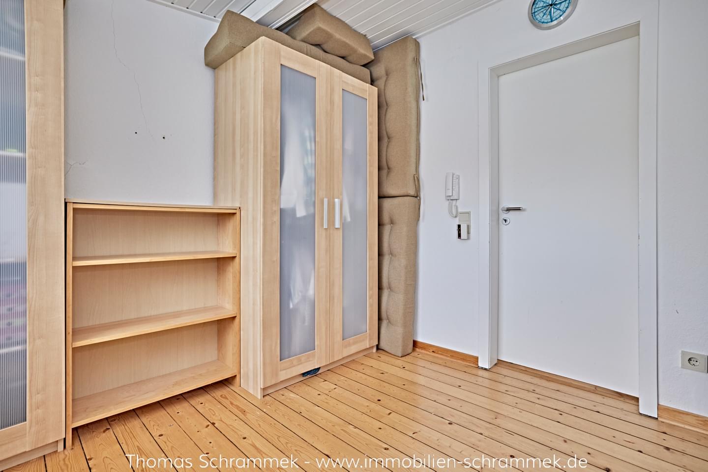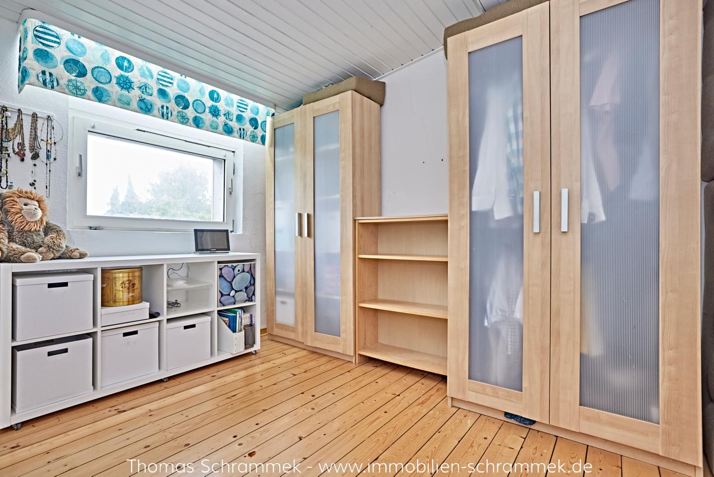 - Kinderzimmer 1: Dieses Zimmer eignet sich hervorragend als Kinder- oder Arbeitszimmer und bietet Platz für Spiel, Lernen oder kreative Entfaltung. Bei der vorherigen Nutzung des Hauses als Zweifamilienhaus wurde dieser Raum als Küche und danach als Hauswirtschaftsraum genutzt und ist auch heute noch als solcher eingerichtet.