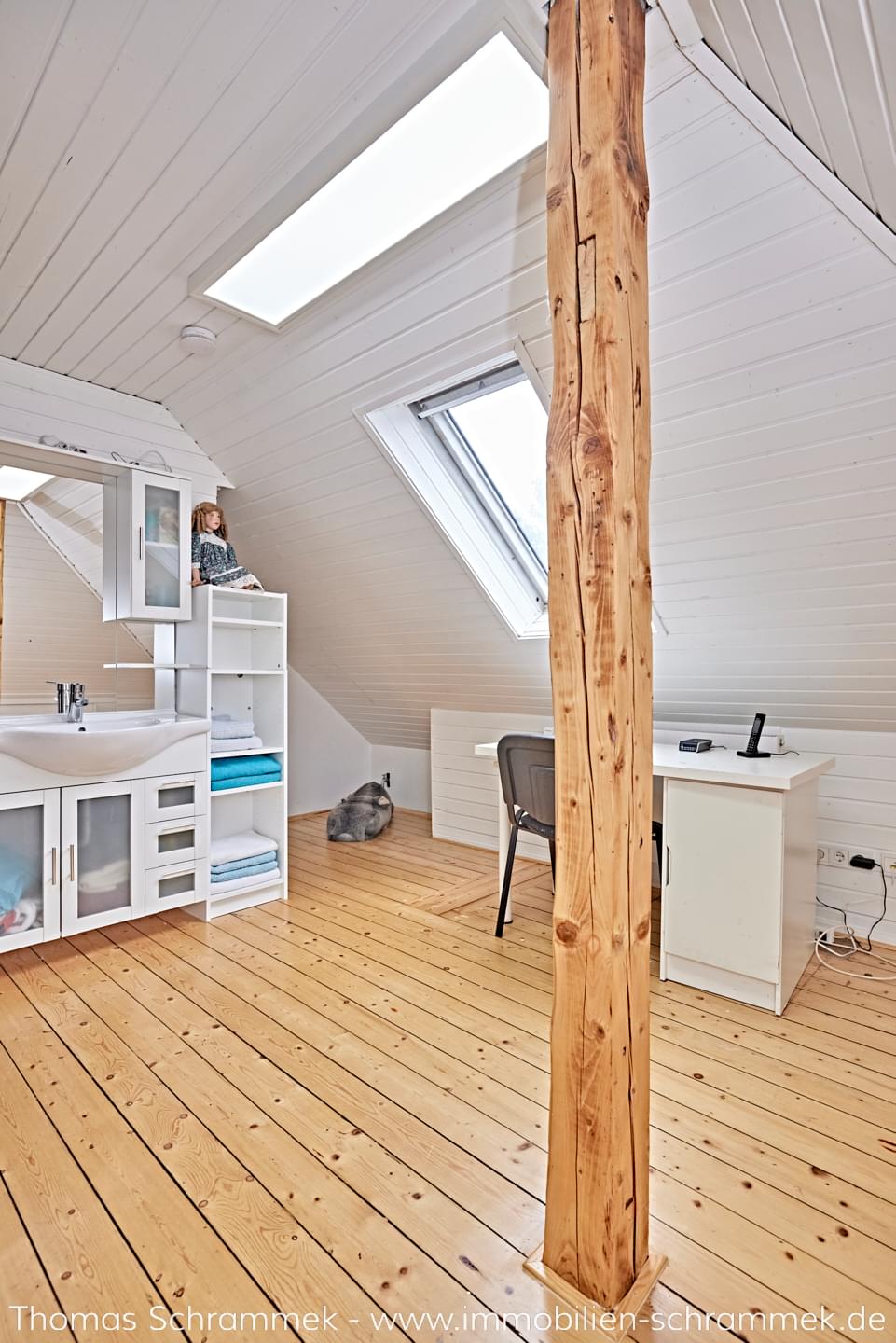 - Abstellraum: Der ursprünglich als Trockenboden genutzte Bereich ist vollständig ausgebaut und als Homeoffice genutzt.
