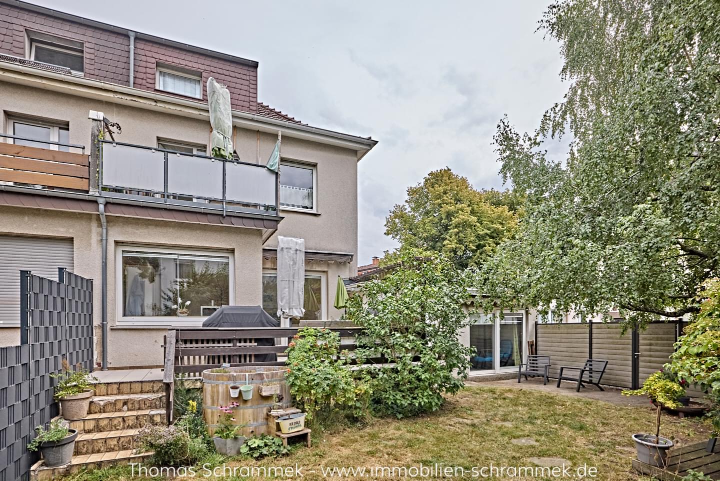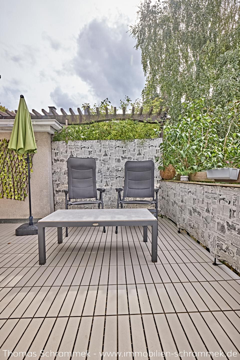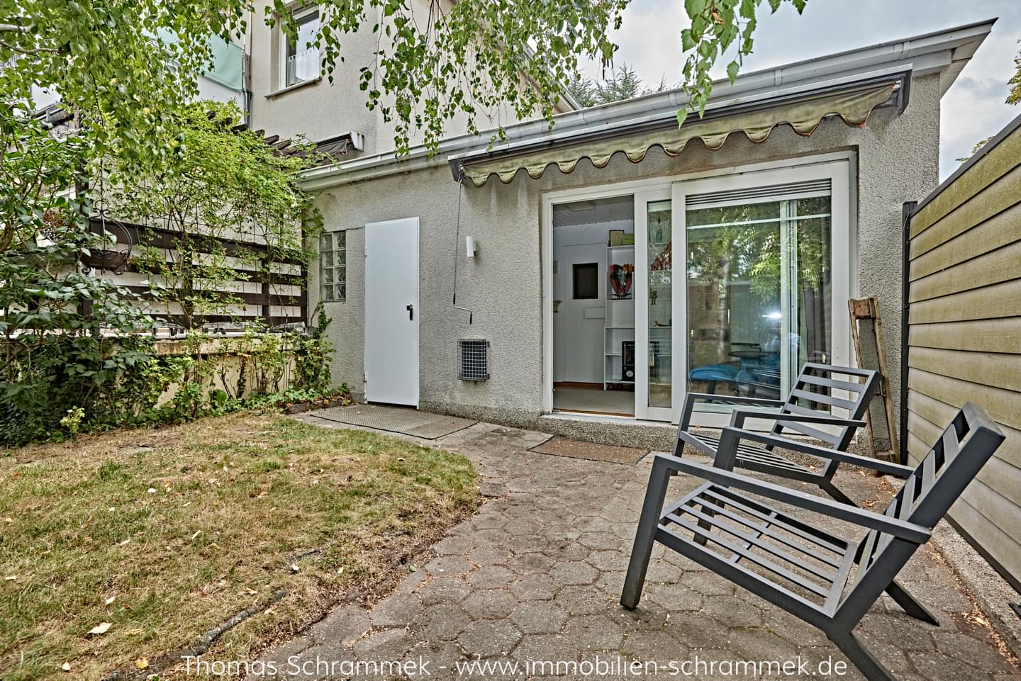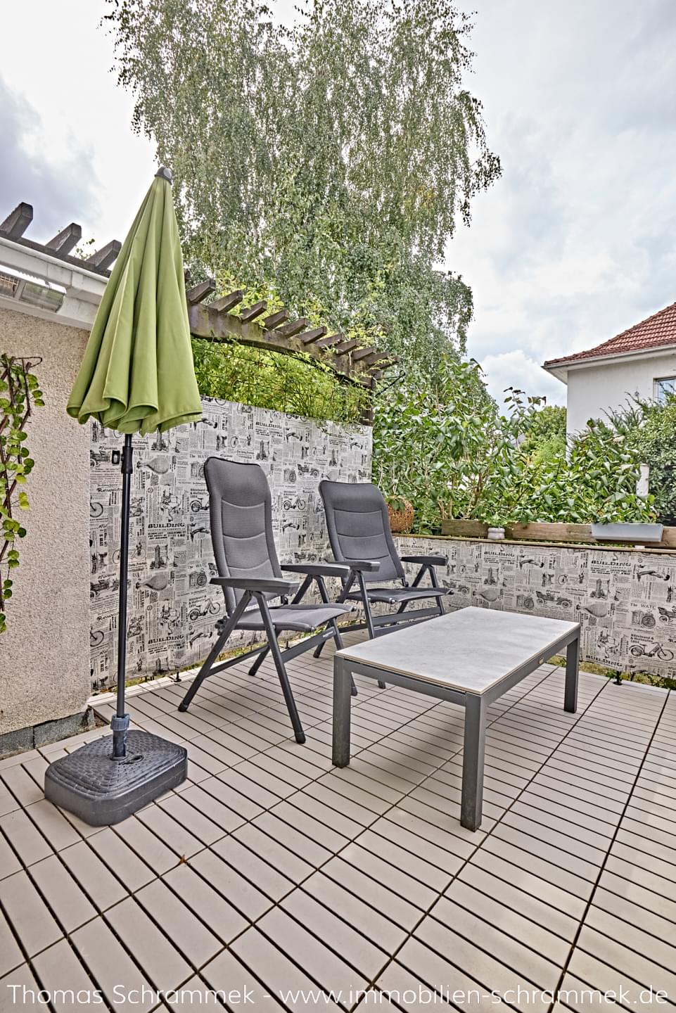 - Terrasse und Garten: Direkt vom Schlafzimmer (oder Wohnzimmer) erreichbar, lädt die überdachte Terrasse zum Verweilen ein und eröffnet den Blick ins hauseigene Grün. Über wenige Stufen gelangt man direkt in den angrenzenden Garten, der mit seiner gepflegten Rasenfläche und ausreichend Platz zum Spielen, Entspannen oder Gärtnern überzeugt. Eine grüne Oase mitten in stadtnaher Umgebung – perfekt für gemütliche Stunden im Freien oder gesellige Nachmittage mit Familie und Freunden.