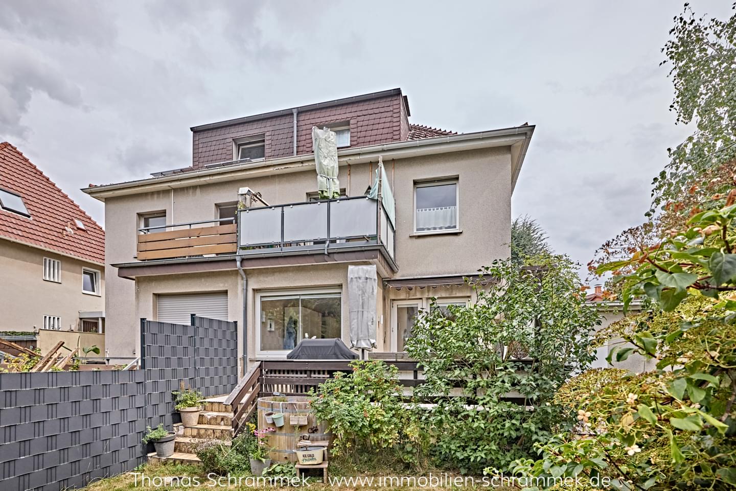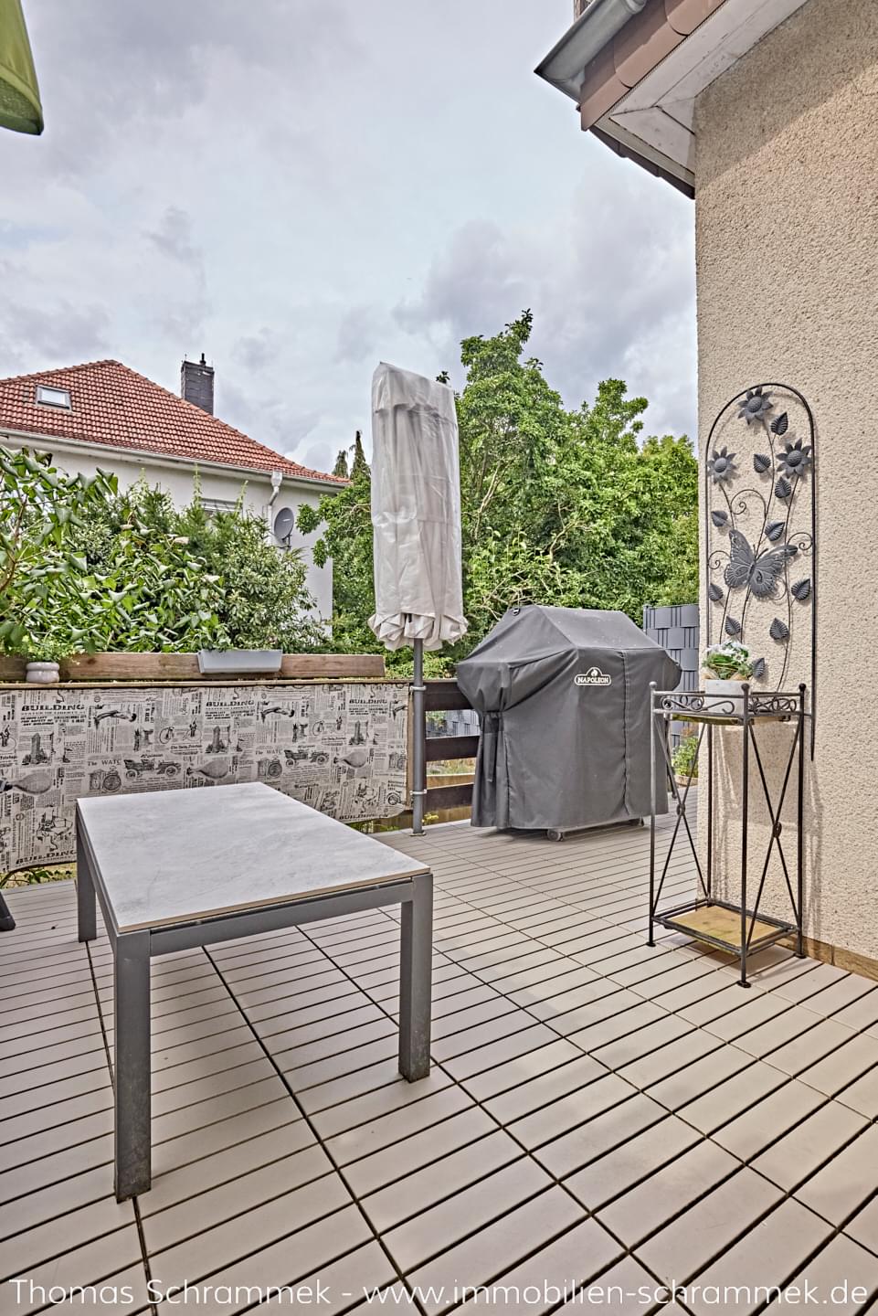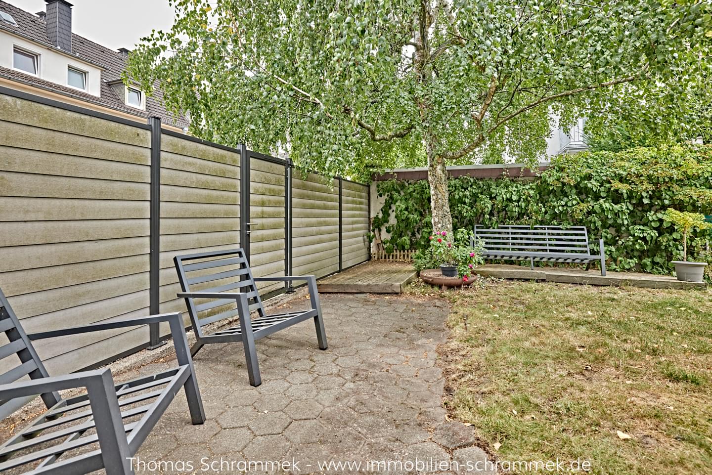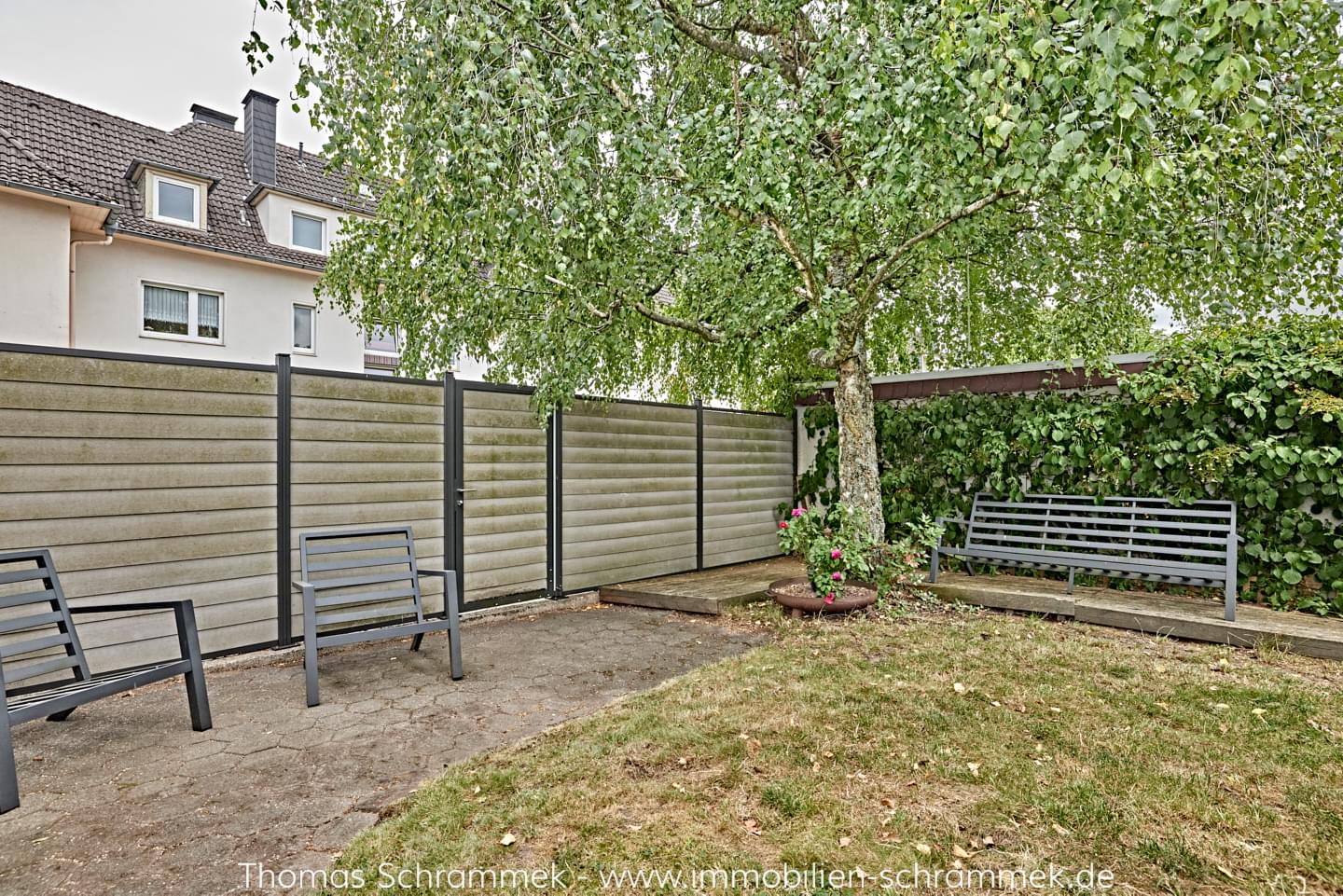 - Terrasse und Garten: Direkt vom Schlafzimmer (oder Wohnzimmer) erreichbar, lädt die überdachte Terrasse zum Verweilen ein und eröffnet den Blick ins hauseigene Grün. Über wenige Stufen gelangt man direkt in den angrenzenden Garten, der mit seiner gepflegten Rasenfläche und ausreichend Platz zum Spielen, Entspannen oder Gärtnern überzeugt. Eine grüne Oase mitten in stadtnaher Umgebung – perfekt für gemütliche Stunden im Freien oder gesellige Nachmittage mit Familie und Freunden.