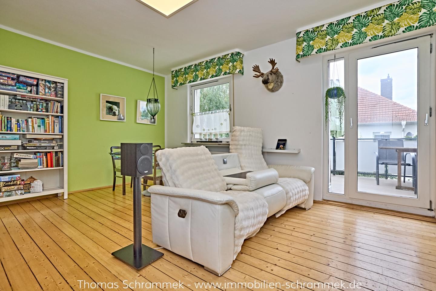 - Wohnzimmer (oder Schlafzimmer): Der großzügige Raum besticht durch seinen gelungenen Schnitt und den Zugang zum Balkon, der für eine helle und einladende Atmosphäre sorgt.