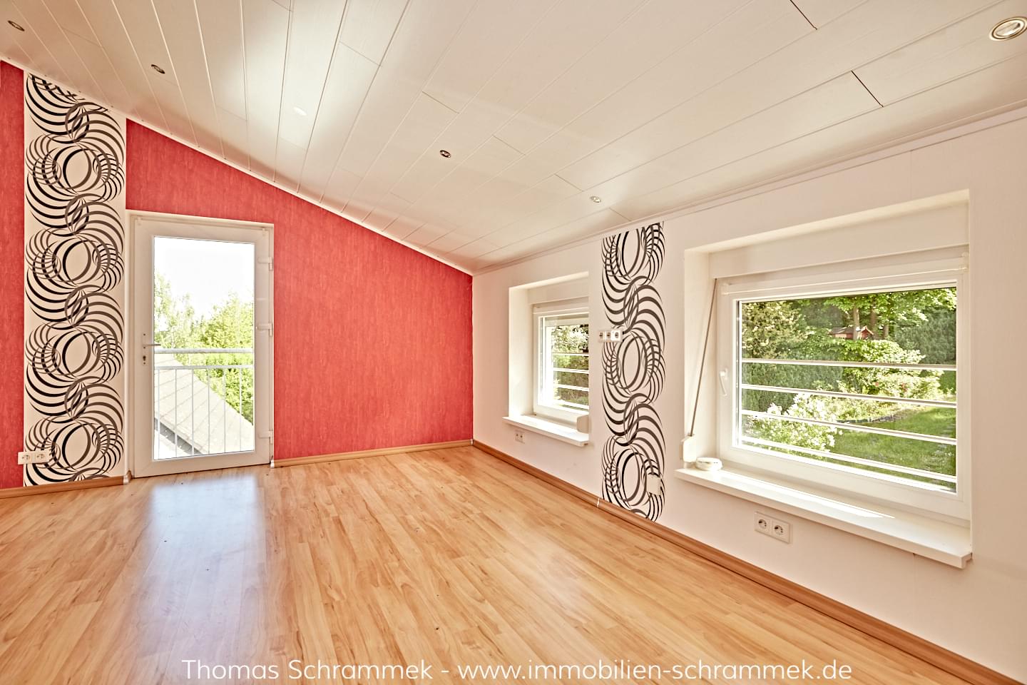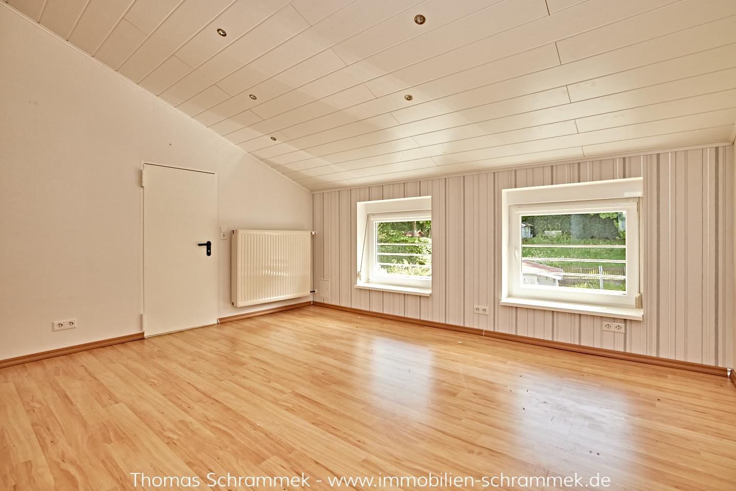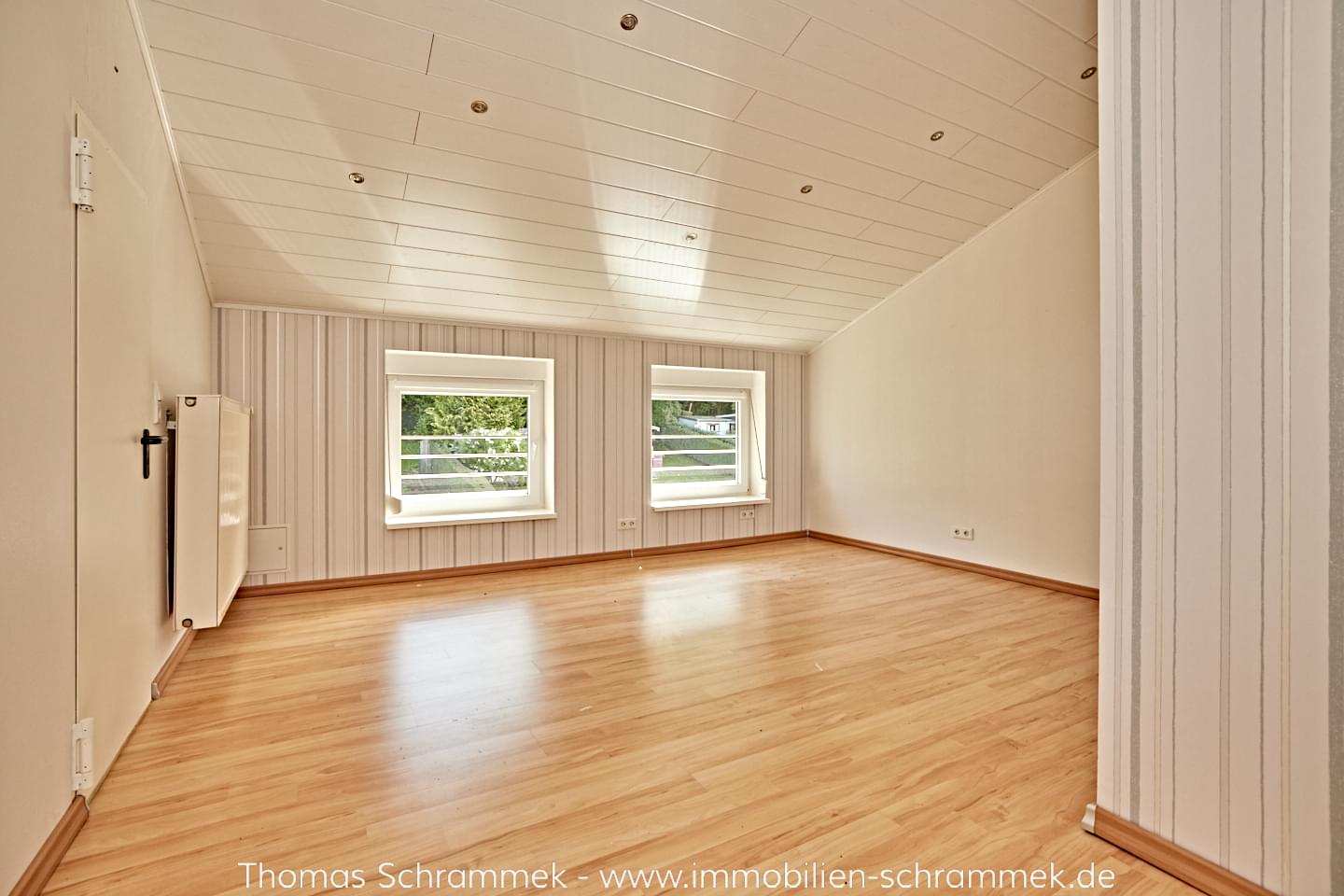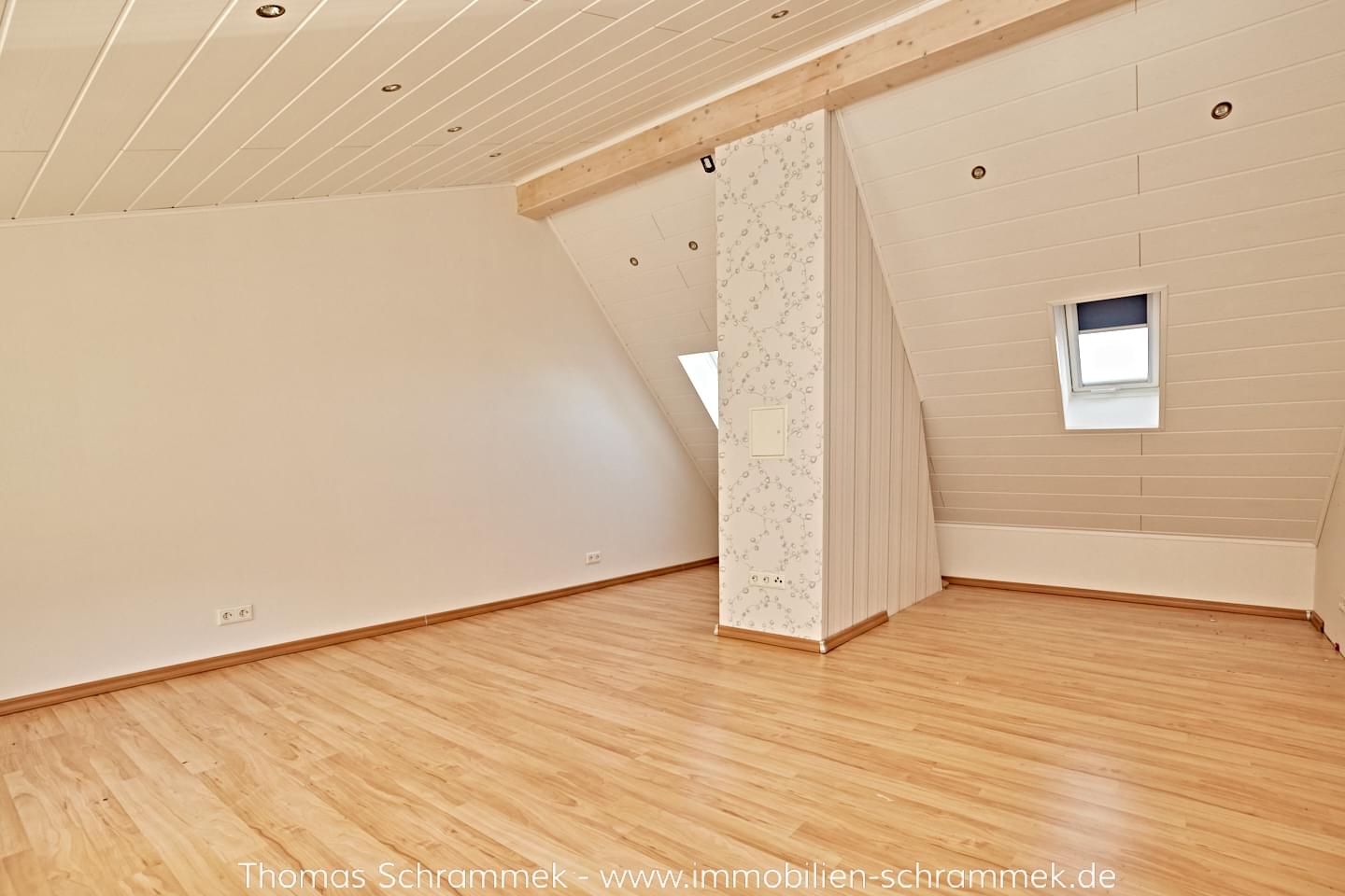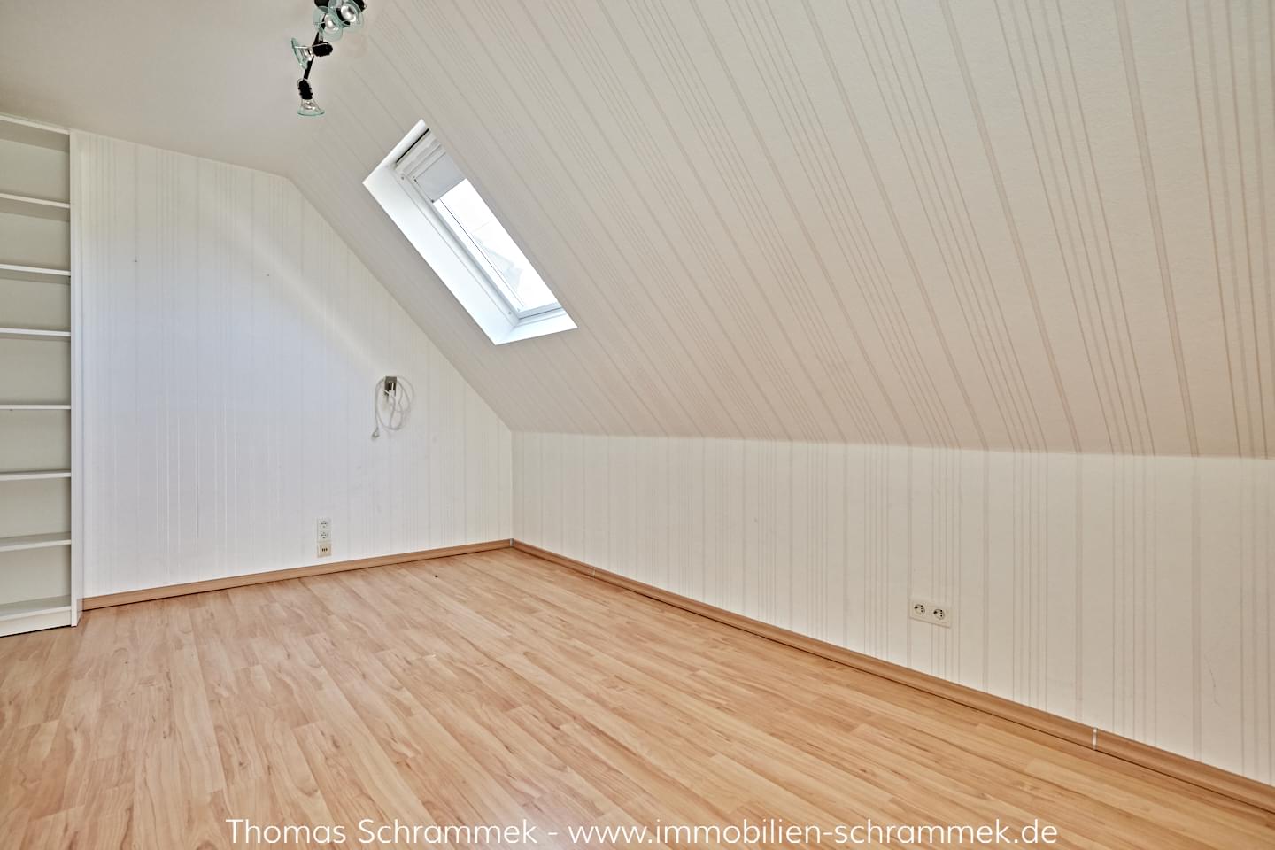 - Kinderzimmer 2: Ein großzügiges Zimmer, welches mit Anschlüssen für eine Pantryküche eröffnet vielfältige Nutzungsmöglichkeiten – vom Schlaf-, Aufenthalts- oder Wohnraum bis hin zur kreativen Hobbyecke. Die Dachschrägen verleihen den Räumen einen gemütlichen Charakter, der durch zahlreiche Fenster mit viel Tageslicht unterstrichen wird.