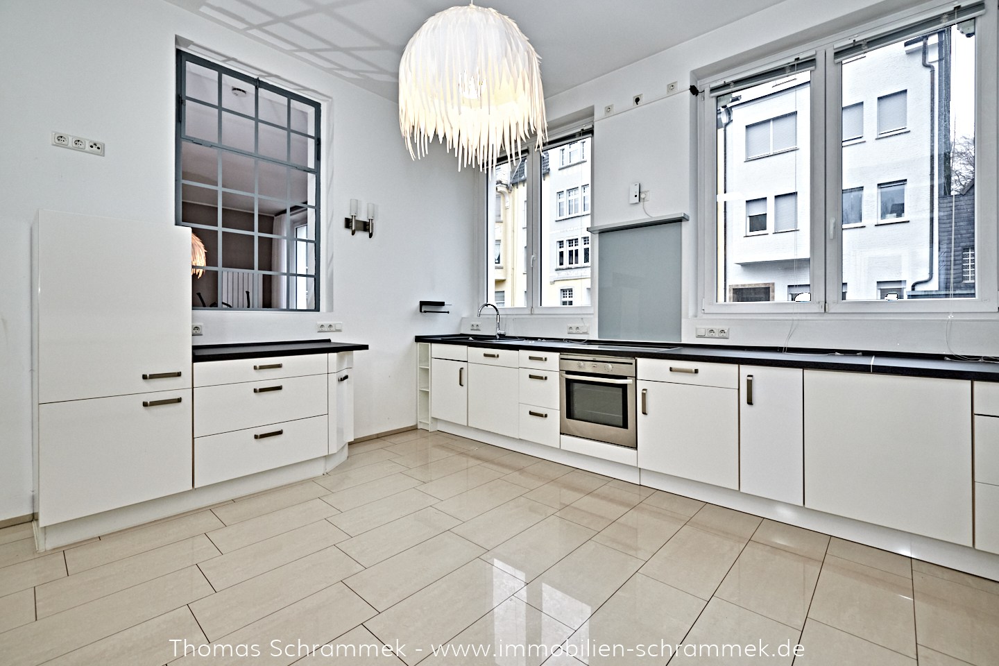 - Küche: Die Küche überzeugt mit großzügiger Arbeitsfläche und viel Stauraum. Ein großes Fenster sorgt für angenehme Lichtverhältnisse, während das zum Essbereich hin eingesetzte Fenster im Industriestil beiden Räumen eine besondere Atmosphäre und einen modernen Charakter verleiht. Die vorhandene Einbauküche gehört zum Mietangebot und wird Ihnen zur pfleglichen Nutzung unentgeltlich überlassen.