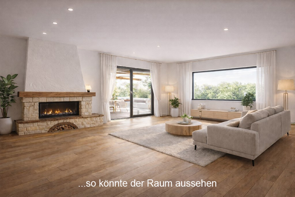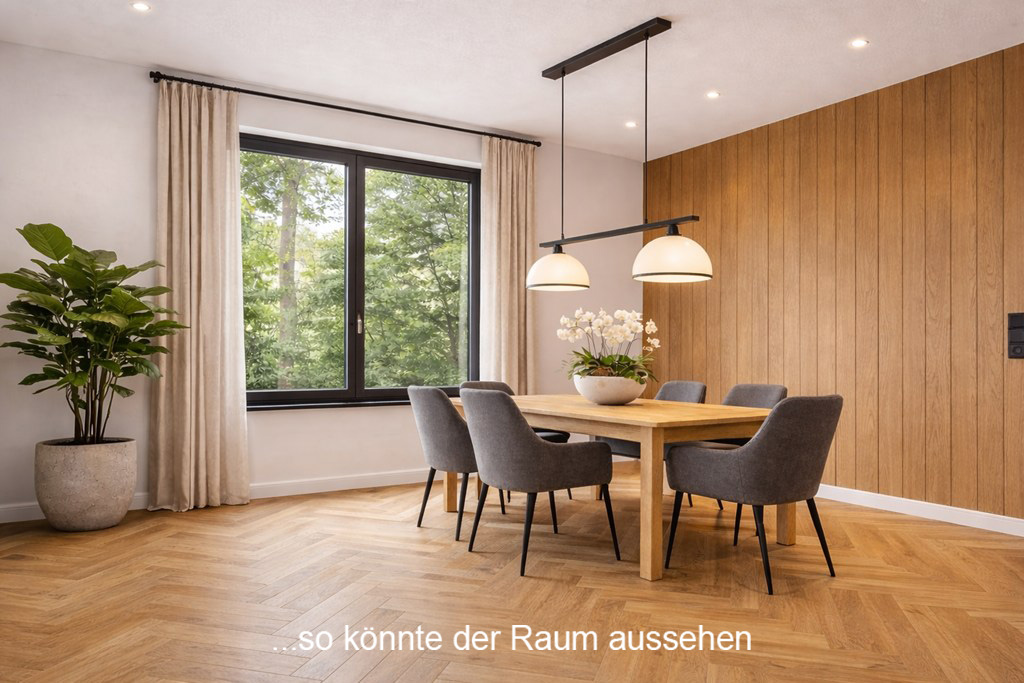 - Wohn-Essbereich: Bereits vom Flur aus öffnet sich der weitläufige Wohn- und Essbereich, der mit viel Licht und Offenheit eine einladende Atmosphäre schafft. Er ist das zentrale Herzstück des Hauses – ein lebendiger Treffpunkt für die ganze Familie, der Raum für gemeinsames Erleben, Entspannen und Genießen bietet.