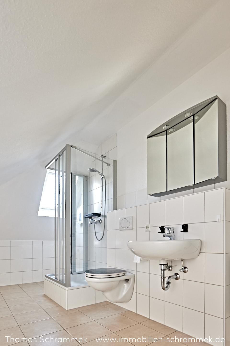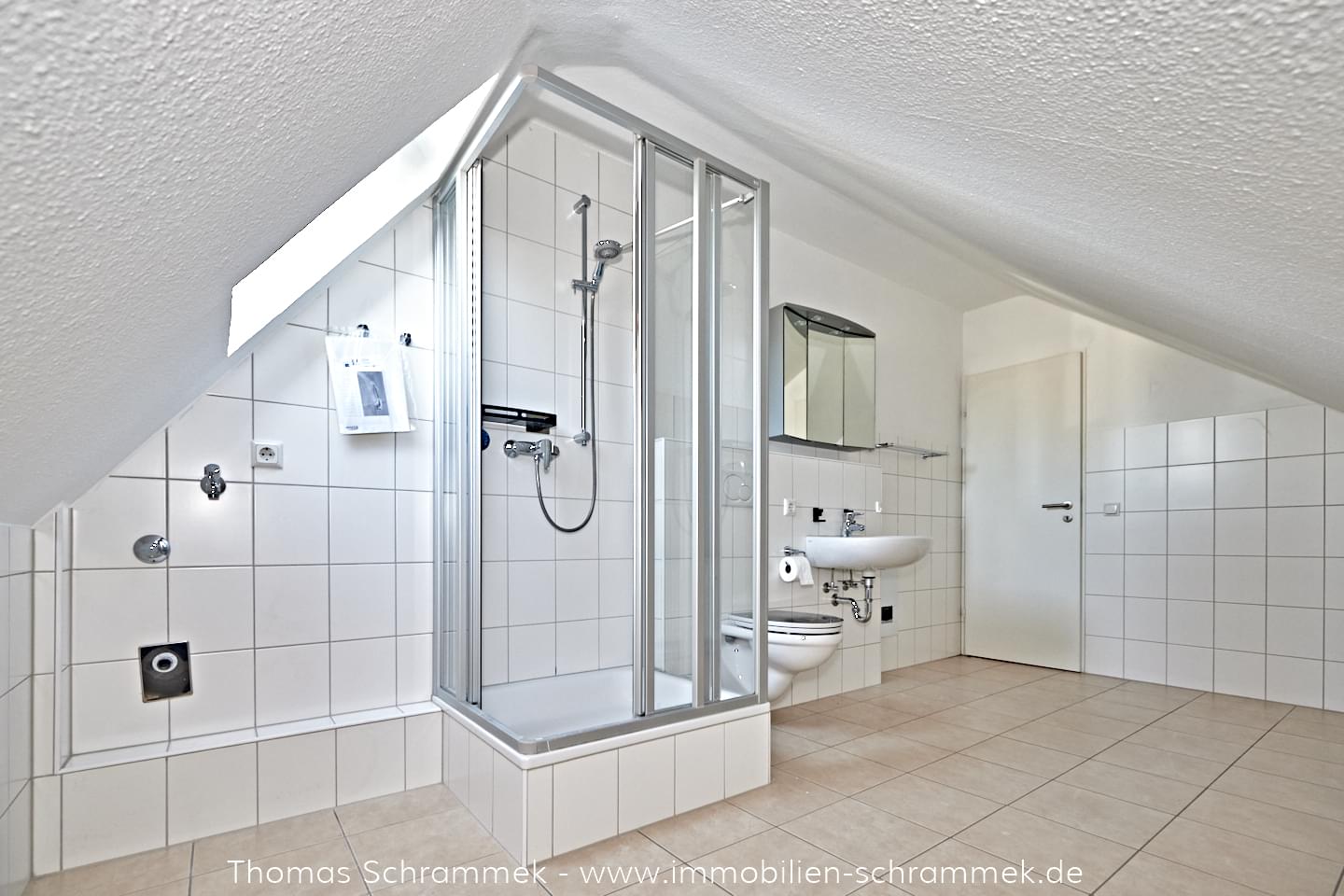 - Badezimmer: Das Tageslichtbadezimmer ist funktional und zeitlos gestaltet und mit einer Dusche sowie einen Anschluss für eine Waschmaschine ausgestattet.