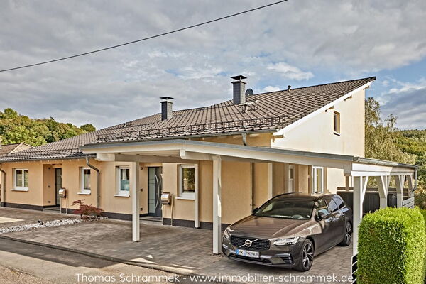 - Parkmöglichkeiten: Der großzügige Carport schützt Ihre Fahrzeuge zuverlässig bei jedem Wetter und bietet Platz für ein großes sowie ein kleineres Auto (ca. 4,60m).