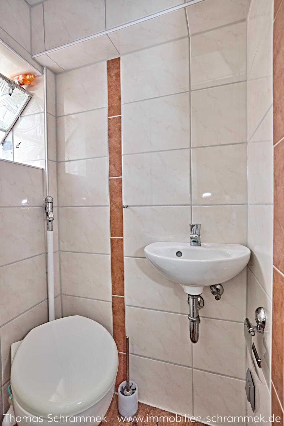 - Gäste-WC: Direkt am Treppenabsatz zum Dachgeschoss gelegen, ergänzt dieses WC das Wohnangebot auf praktische Weise.