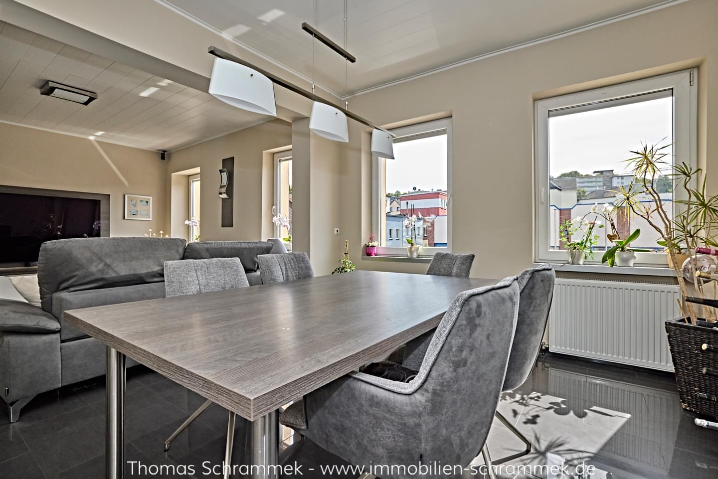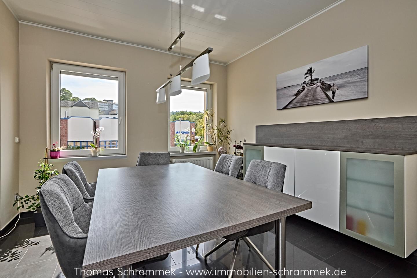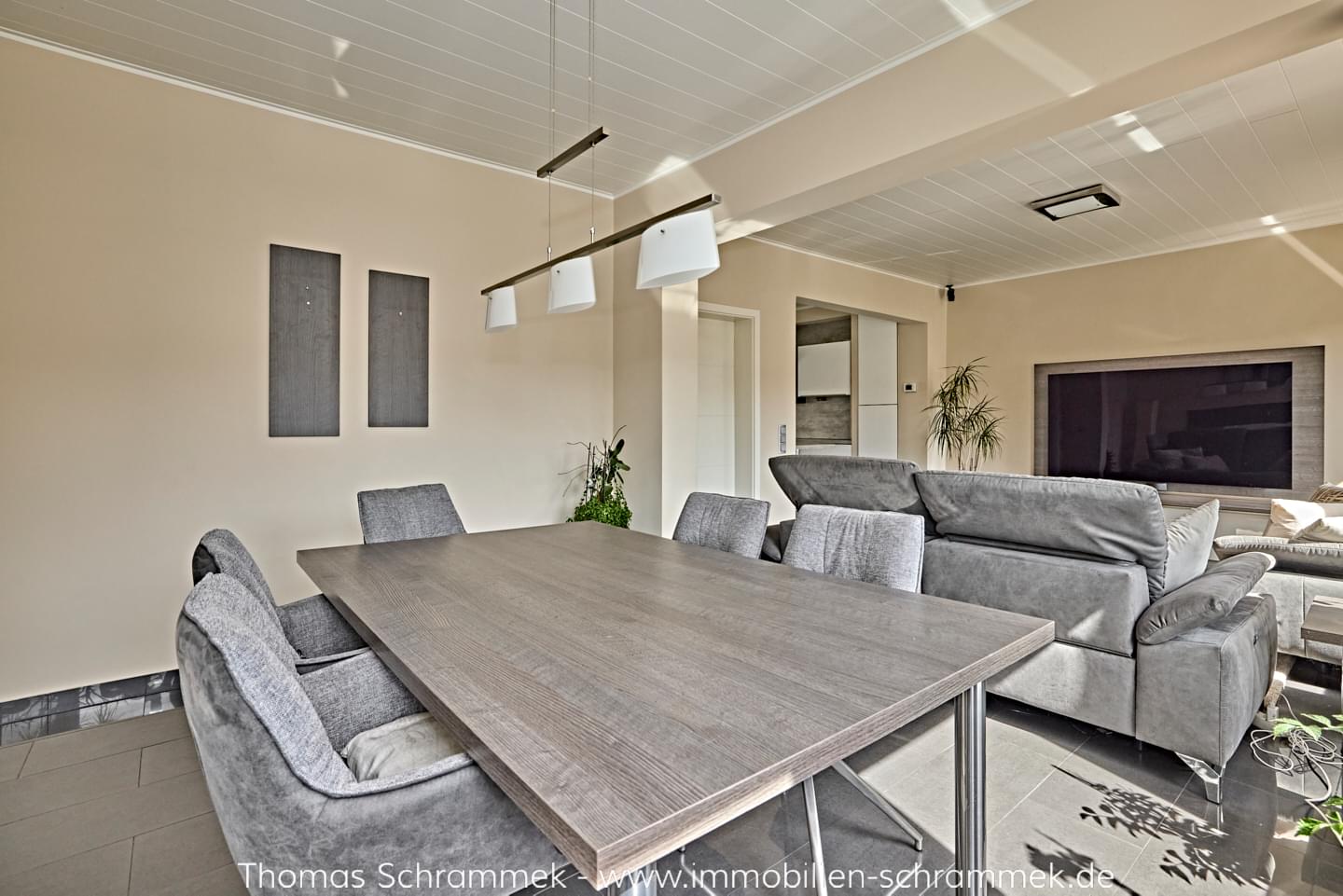 - Wohn-Esszimmer: Offen und großzügig gestaltet, bildet dieser Bereich das Herzstück des Hauses. Fließende Übergänge zur Küche und geschmackvoll aufeinander abgestimmte Einrichtungselemente sorgen für ein harmonisches Gesamtbild.