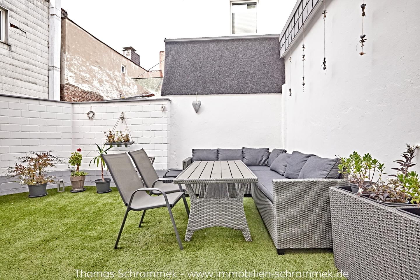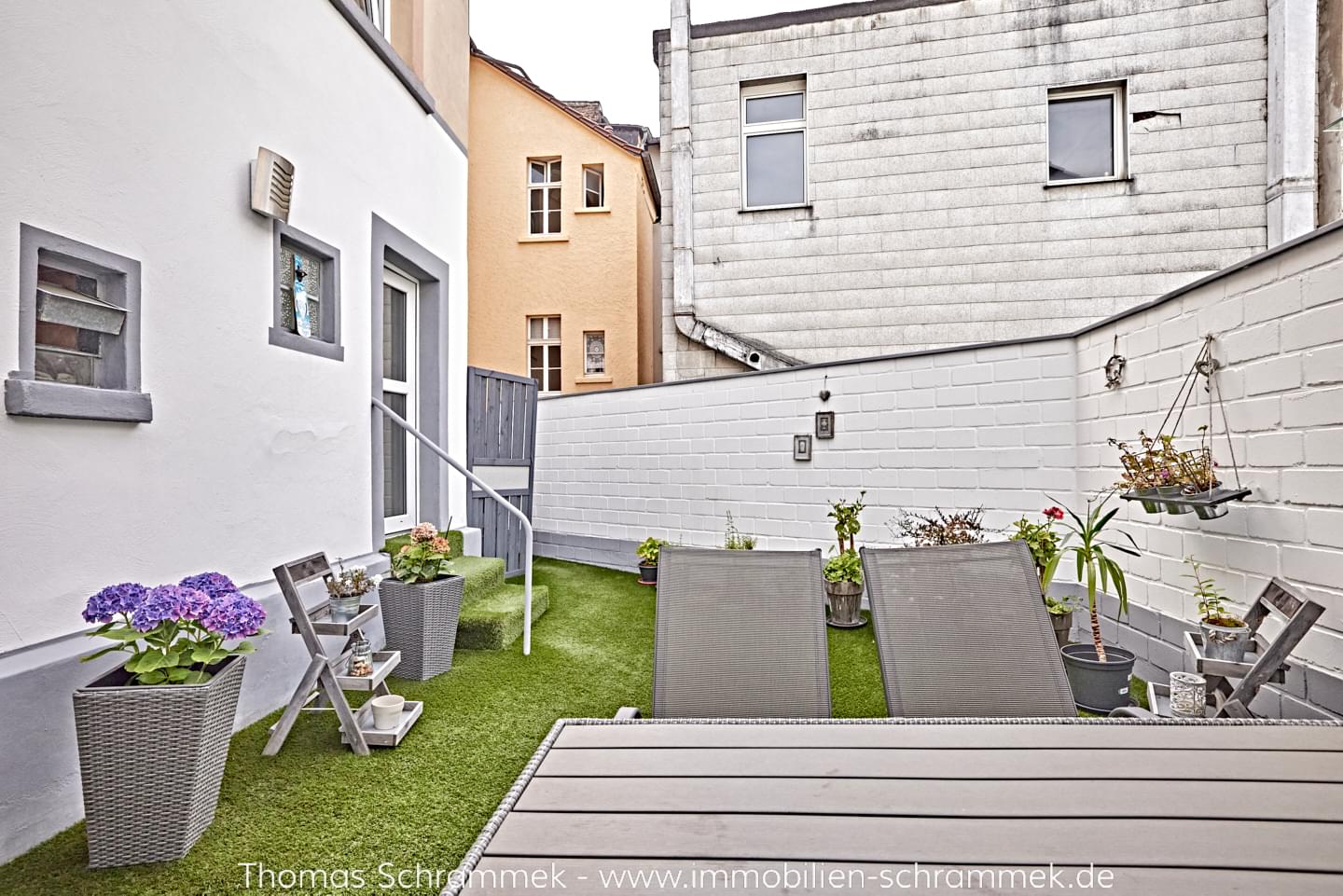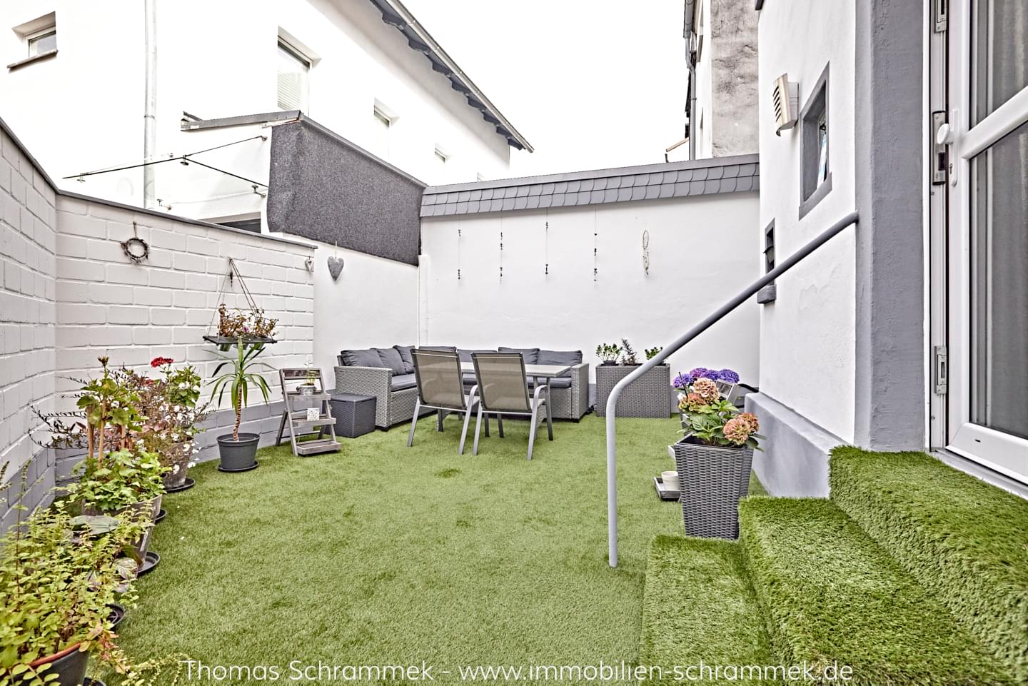 - Innenhof/Terrasse: Direkt vom Erdgeschoss aus erreichen Sie den rückseitig gelegenen Innenhof, der sich wie ein kleiner Garten nutzen lässt und das urbane Wohnen perfekt ergänzt. Der Bereich ist mit hochwertigem Kunstrasen ausgelegt und bietet dadurch eine pflegeleichte Alternative zum klassischen Grün – ideal für alle, die den Komfort eines Außenbereichs genießen möchten, ohne viel Aufwand für Gartenpflege zu haben. Ob für entspannte Stunden in der Sonne, einen gemütlichen Grillabend oder als geschützter Spielbereich für Kinder – dieser Hof schafft zusätzlichen Wohnraum im Freien und wird schnell zum Lieblingsplatz im Alltag. Trotz der offenen Gestaltung vermittelt der Innenhof eine angenehme Abgeschiedenheit vom Trubel der Stadt und bietet vielseitige Nutzungsmöglichkeiten mitten im Zentrum.