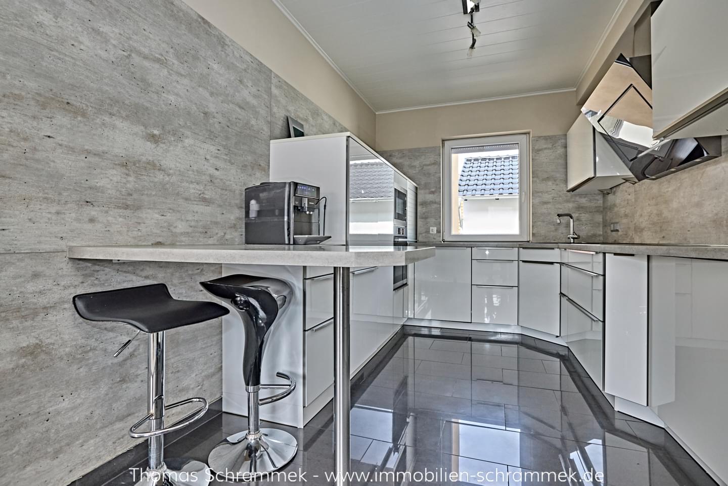 - Küche: Die moderne Einbauküche mit integrierter Esstheke überzeugt durch hochwertige Ausstattung.