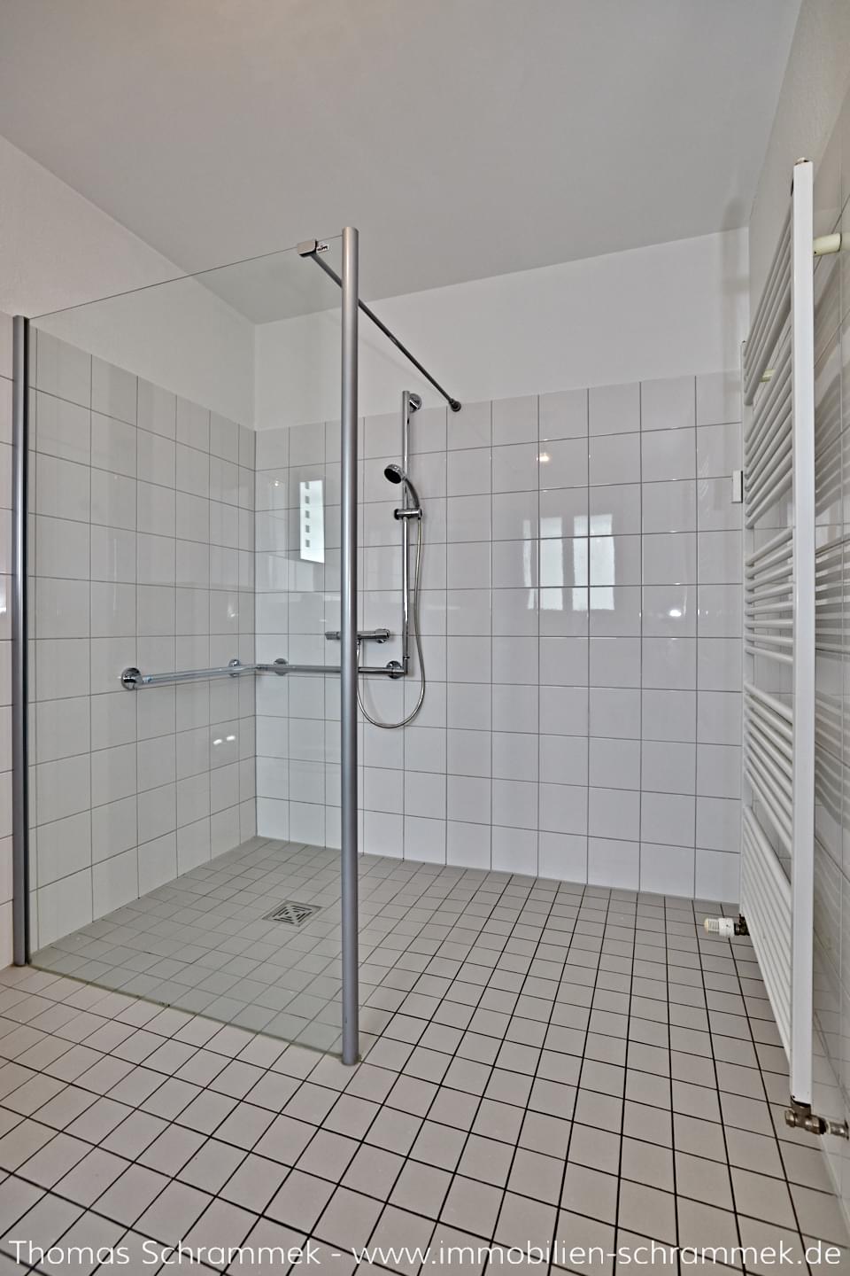 - Badezimmer: Das zeitlos gestaltete Tageslichtbad ist mit einer bodengleichen Dusche, einem WC sowie einem Waschtisch ausgestattet und überzeugt durch seine barrierefreiheit. Ein integrierter Waschmaschinenanschluss erhöht den praktischen Wohnkomfort zusätzlich.