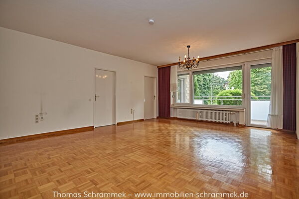 Vom Wohnzimmer erreichen Sie heute 2 Schlafräume, ein weiterer Schlafraum ist von der Diele bzw. dem Flur aus erschlossen, welche auch Zugang zum Wohnbereich, zur Küche, zu dem Badezimmer sowie dem Gäste-WC gewährt.