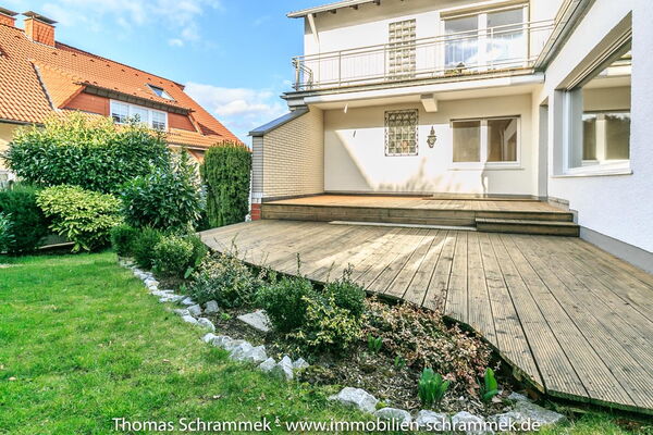 Genießen Sie die schönen Tage auf der sehr großen zum Westen orientierten Terrasse und dem eigenen Garten. Die Hauptterrasse ist direkt vom Wohnbereich zu erreichen und zum Teil von drei Seiten umschlossen, leicht überdacht und mit einer Markise ausgestattet. Eine zweite, kleinere zum Südosten ausgerichtete Terrasse ist ideal für den sonnigen Start in den Tag und befindet sich an der Südwestlichen Grundstücksgrenze.