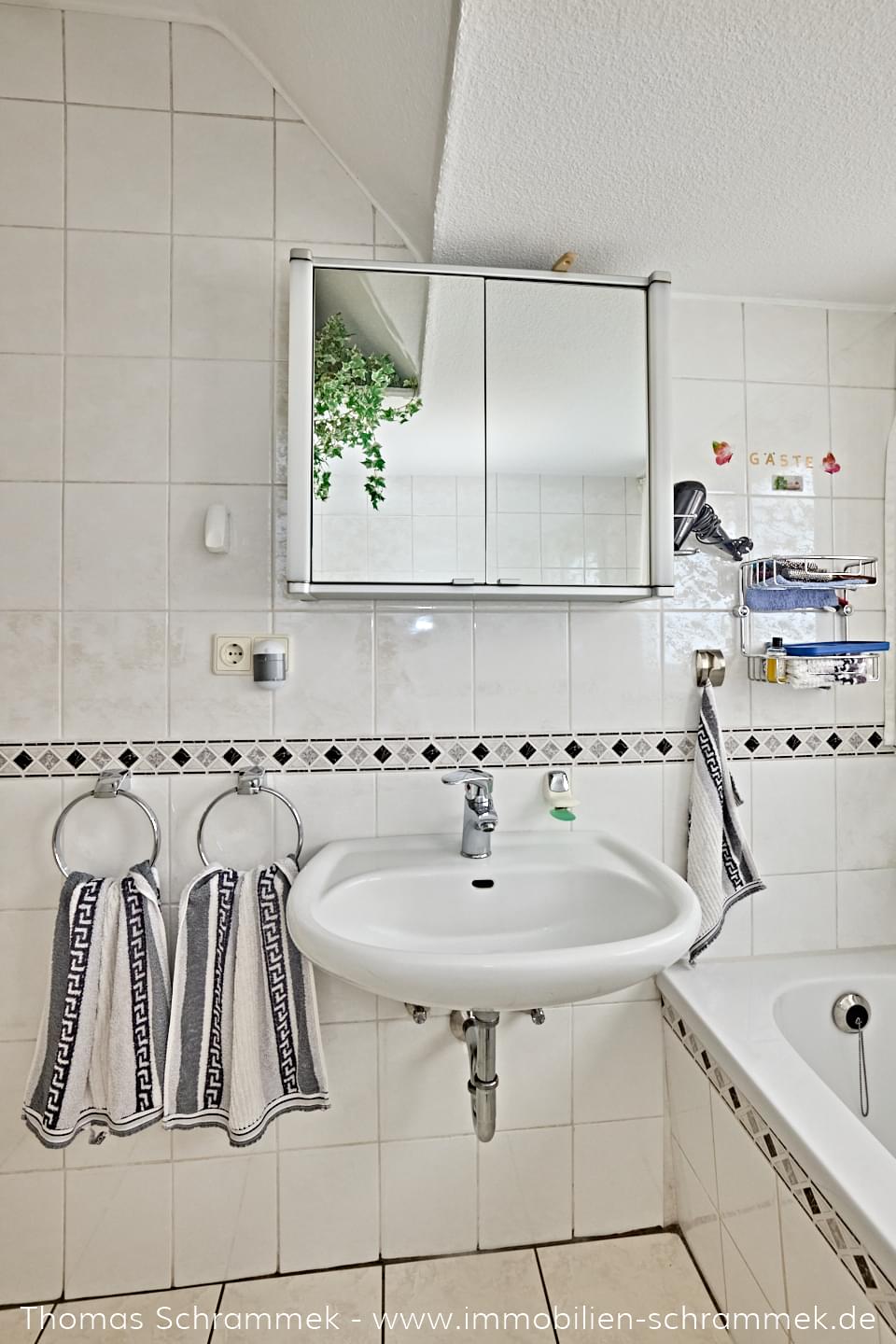 - Badezimmer 1: Mit Tageslicht, Badewanne und zeitloser Ausstattung bietet das Badezimmer alles, was für den täglichen Komfort benötigt wird.