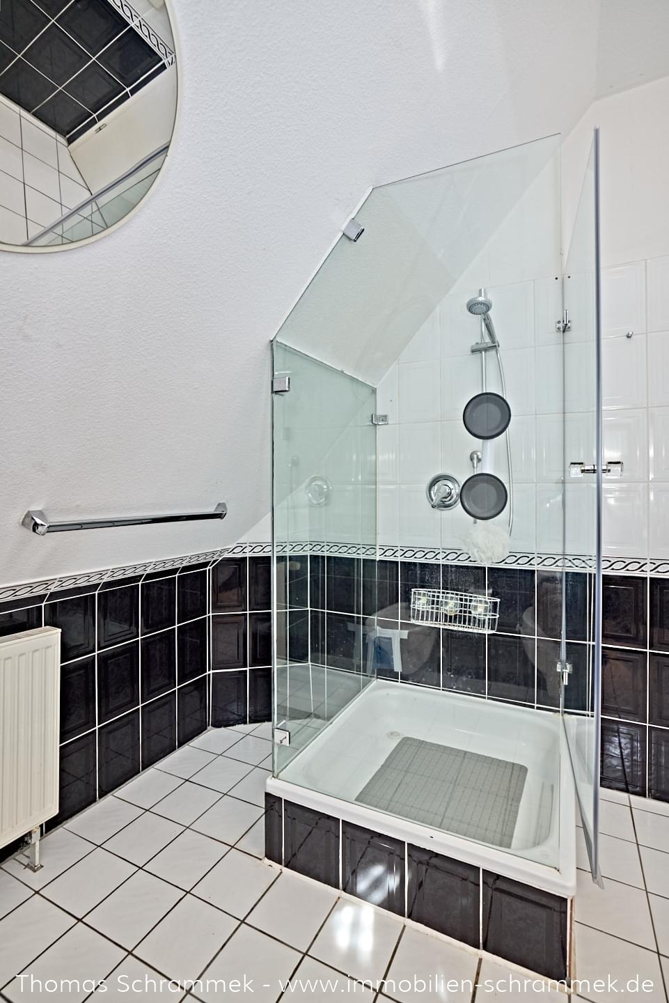 - Badezimmer 2: Im ausgebauten Spitzboden ergänzt ein weiteres Tageslichtbad mit Dusche das Raumangebot.