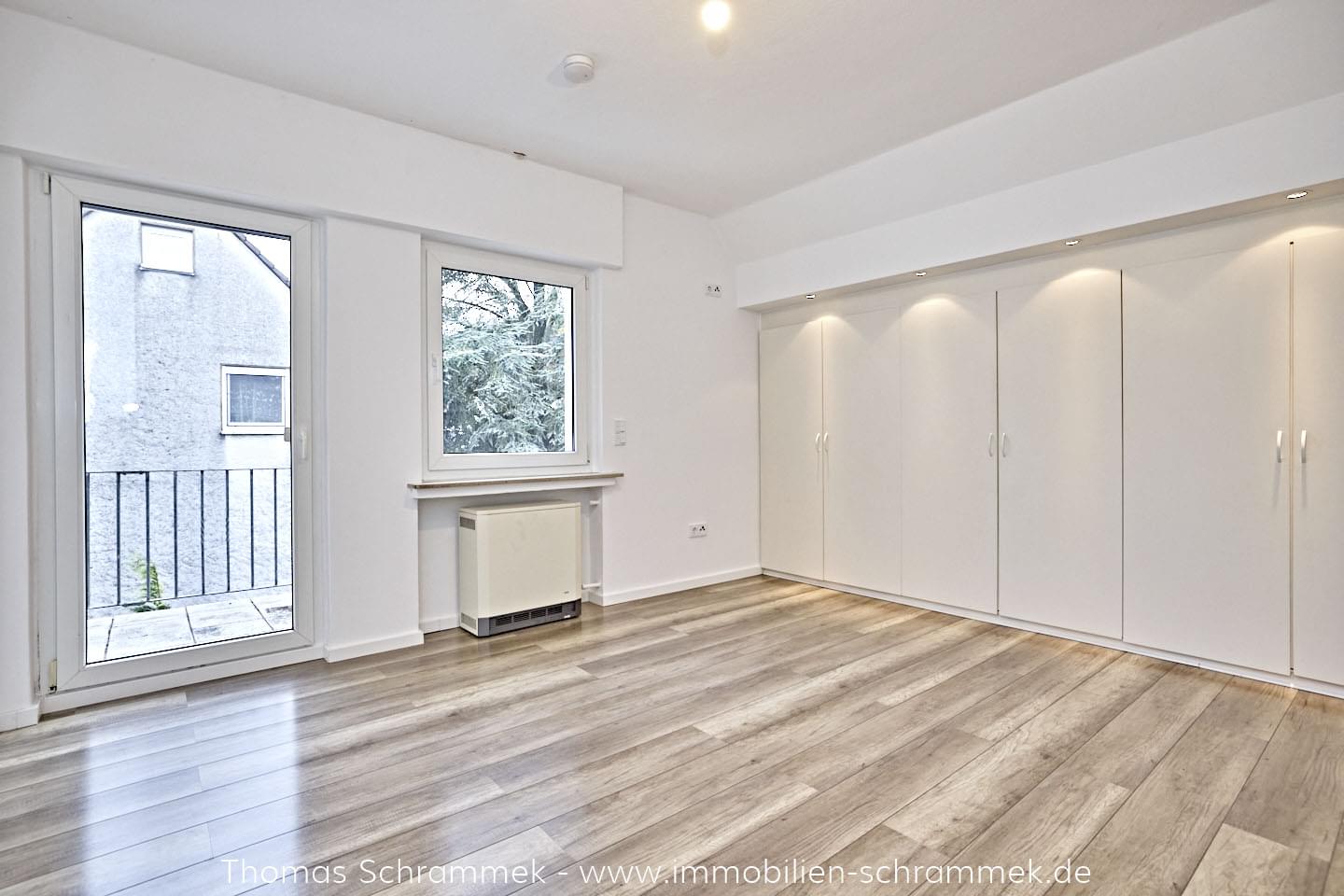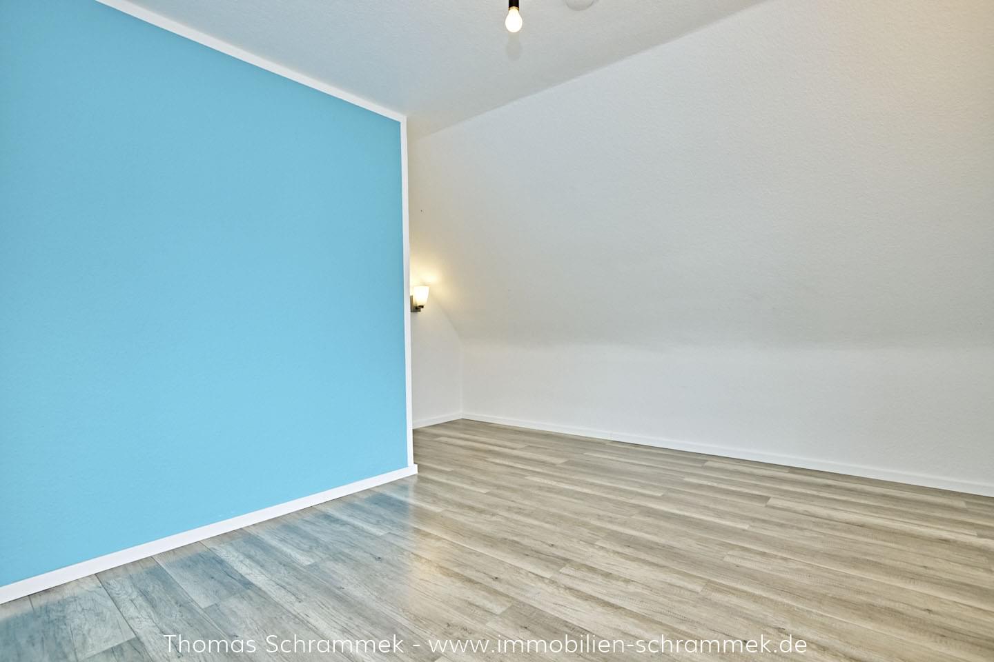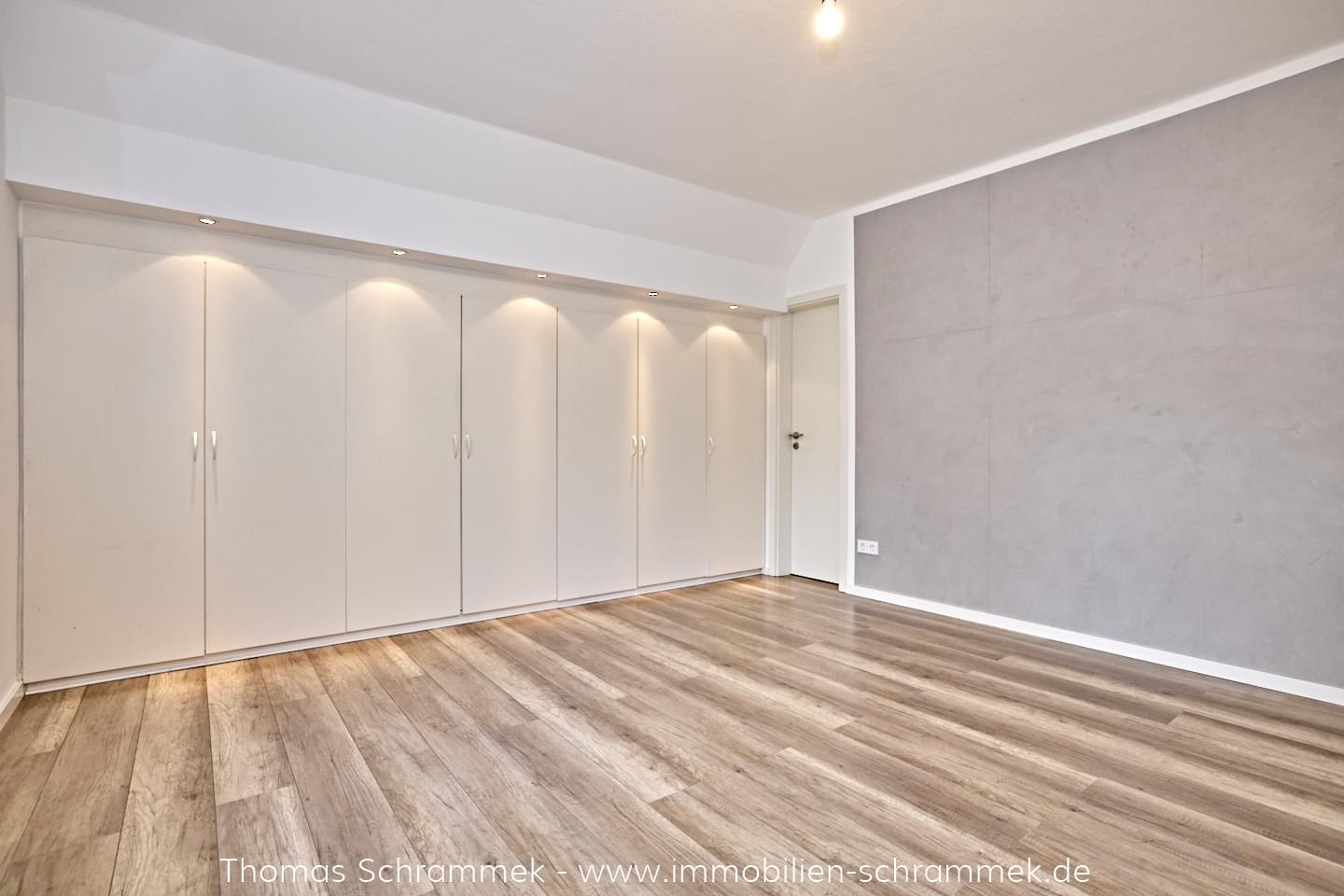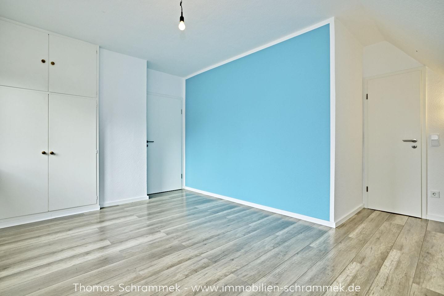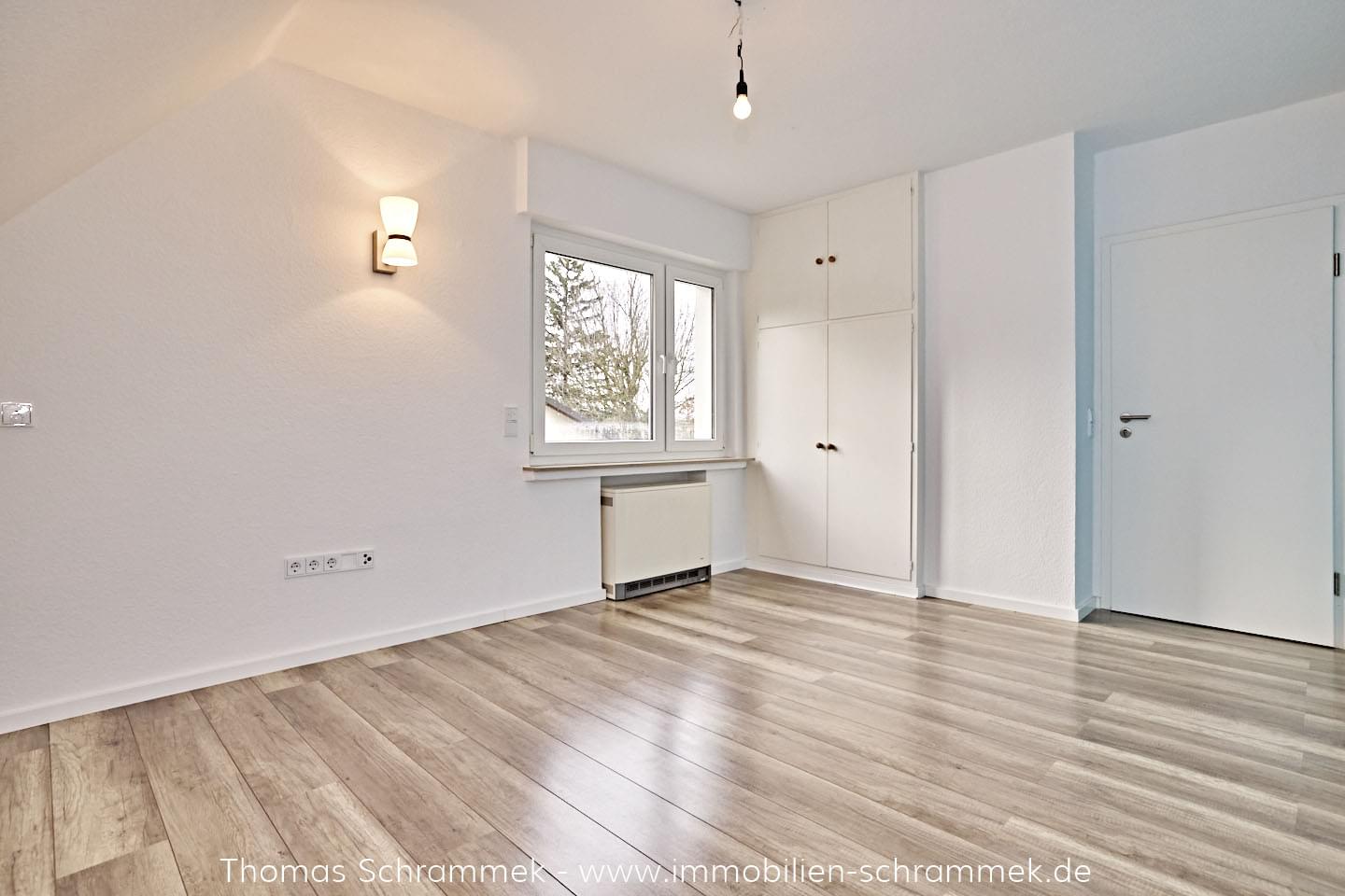 - Schlafzimmer: Das ruhig gelegene Schlafzimmer punktet mit einem maßgefertigten Einbauschrank, der den vorhandenen Platz unter der Schräge ideal nutzt.